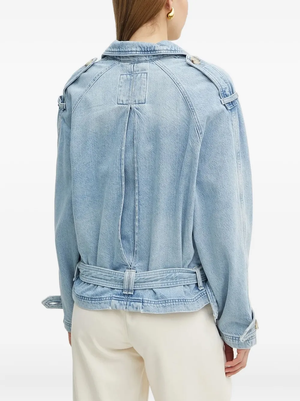 Двубортная джинсовая куртка с поясом BOSS, синий