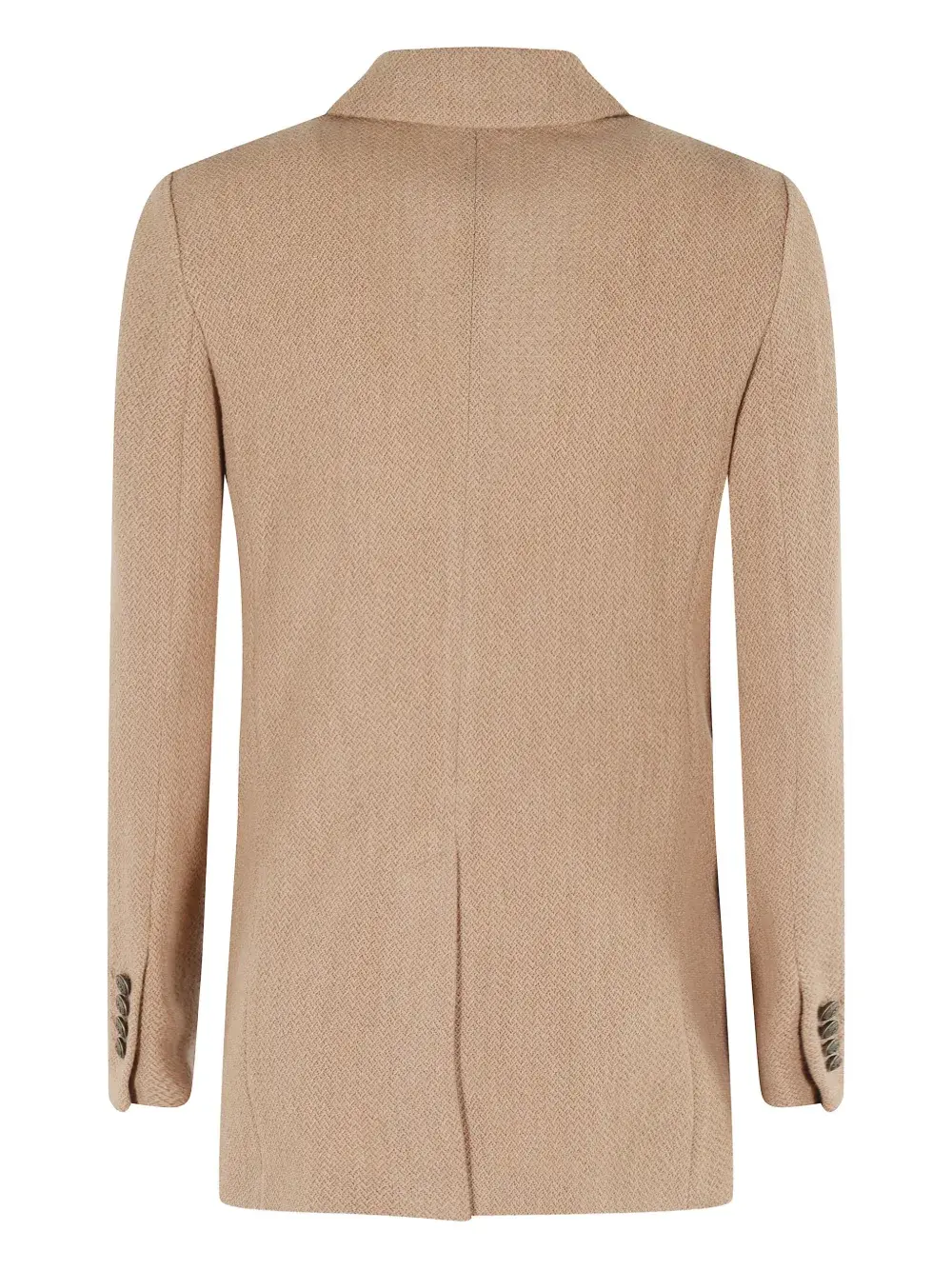 Двубортный пиджак цвета верблюжьей шерсти с заостренными лацканами