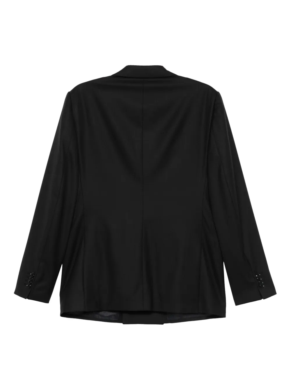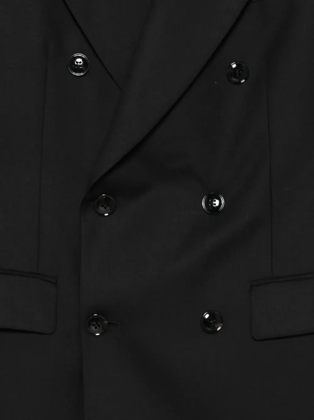 Черный двубортный пиджак с застежкой на пуговицы и острыми лацканами