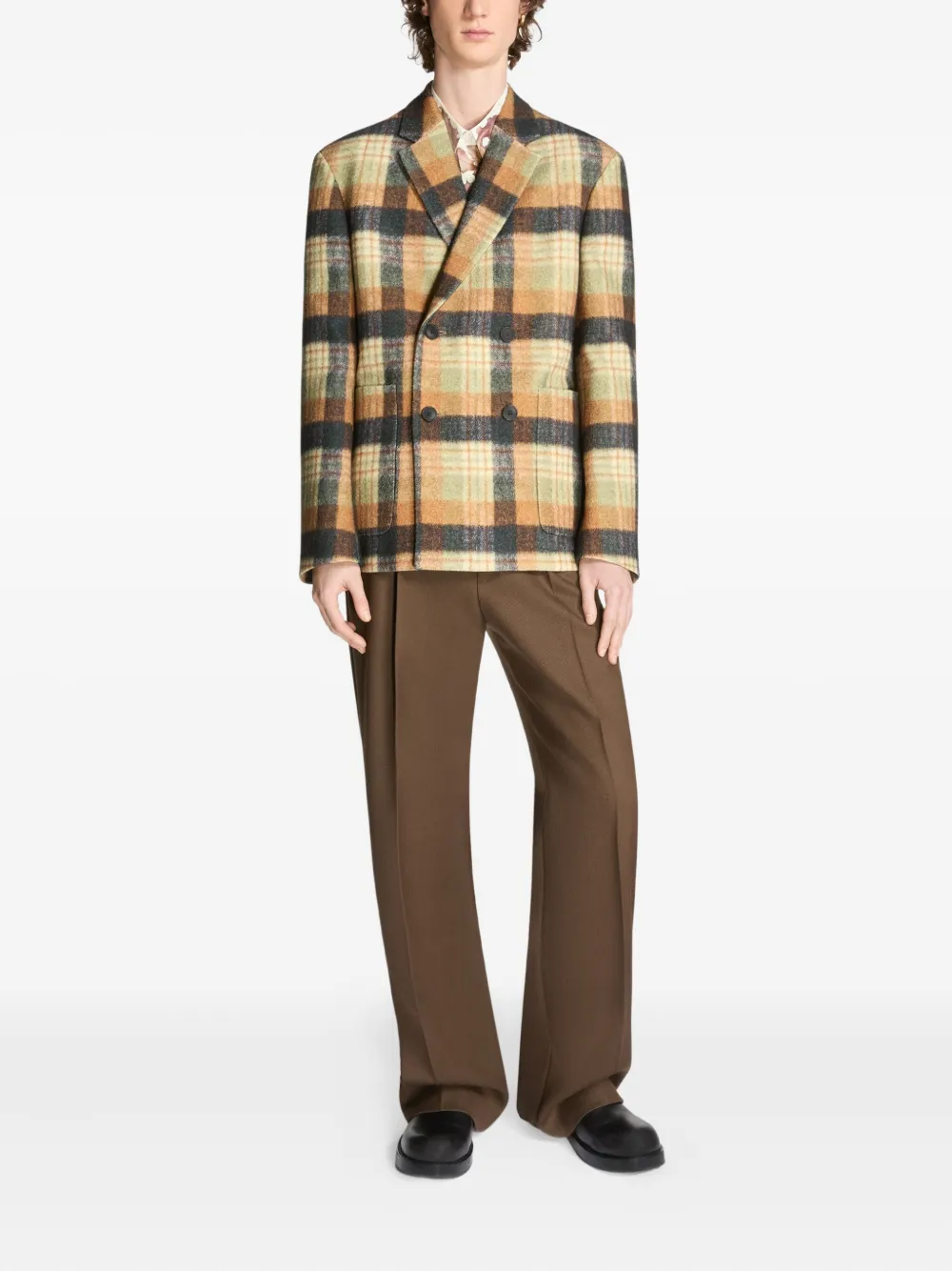 Двубортный пиджак в клетку DRIES VAN NOTEN, желтый