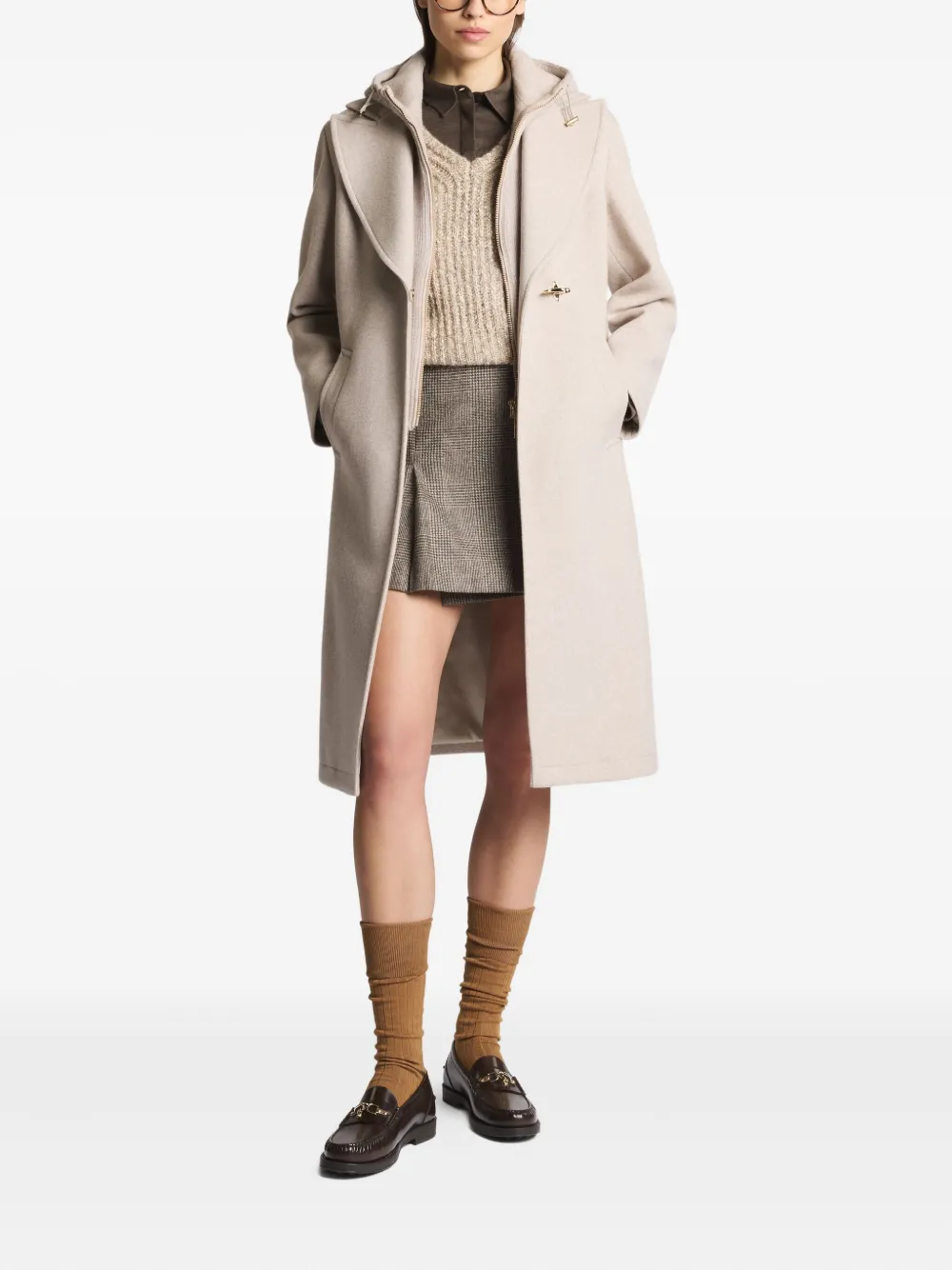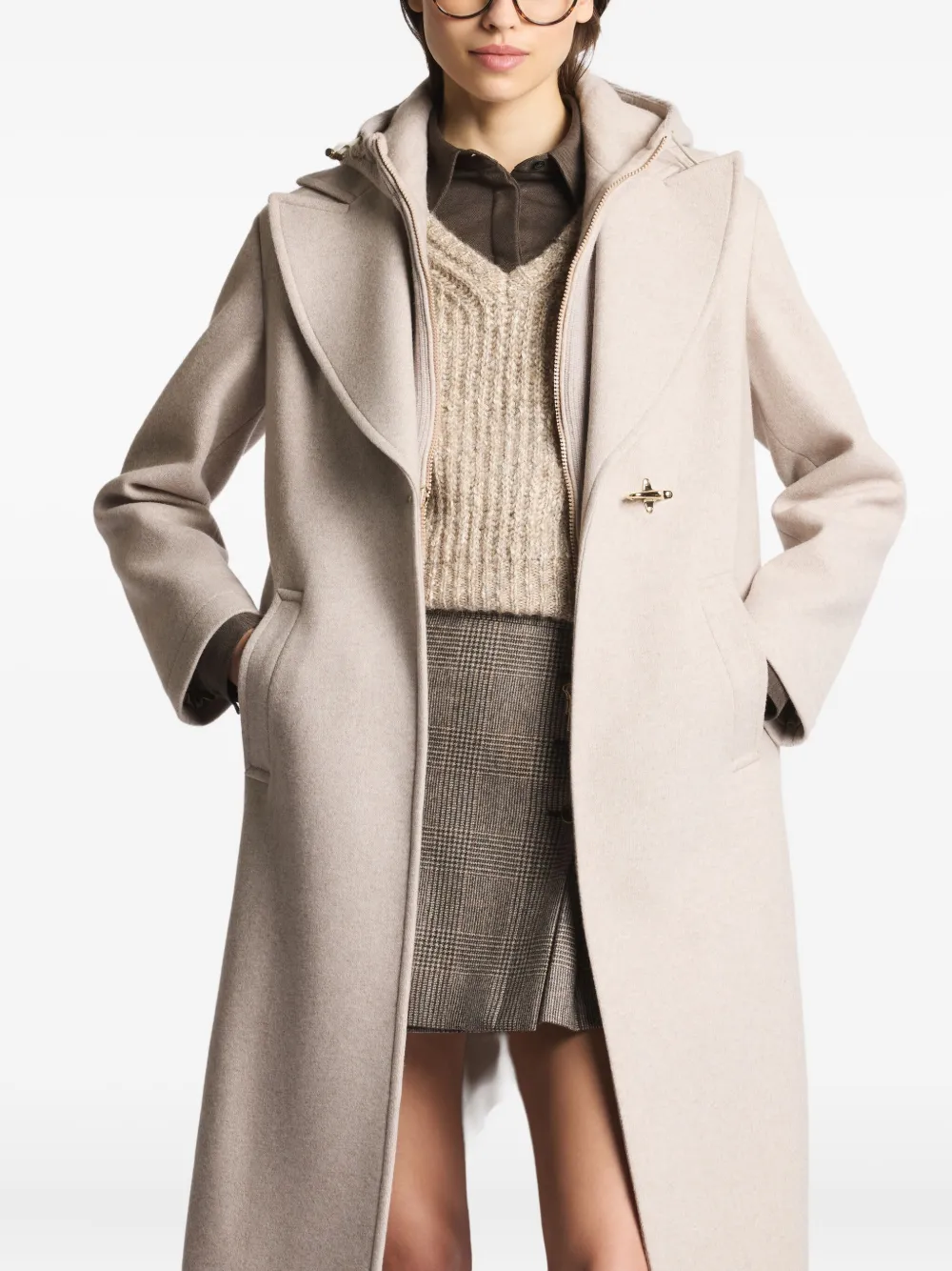 Двубортное пальто с капюшоном Fay, нейтральный
