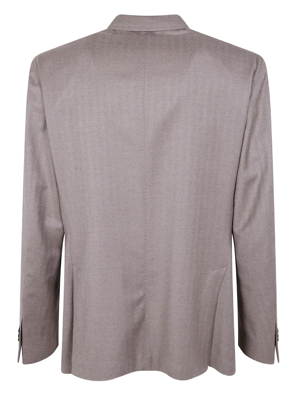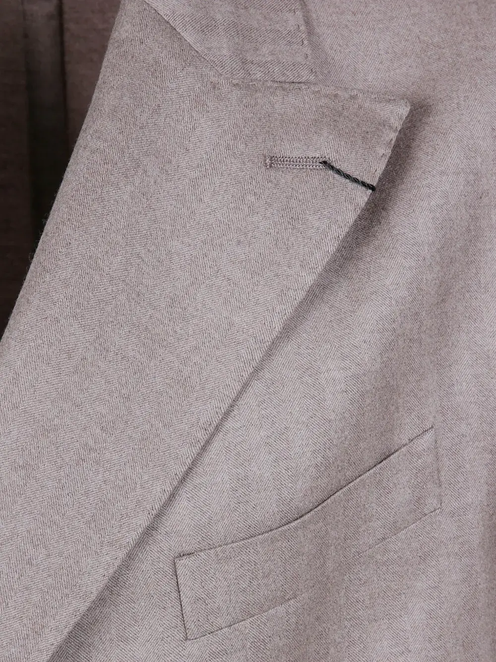 Серо-голубой двубортный пиджак с узором «ёлочка» и накладными карманами
