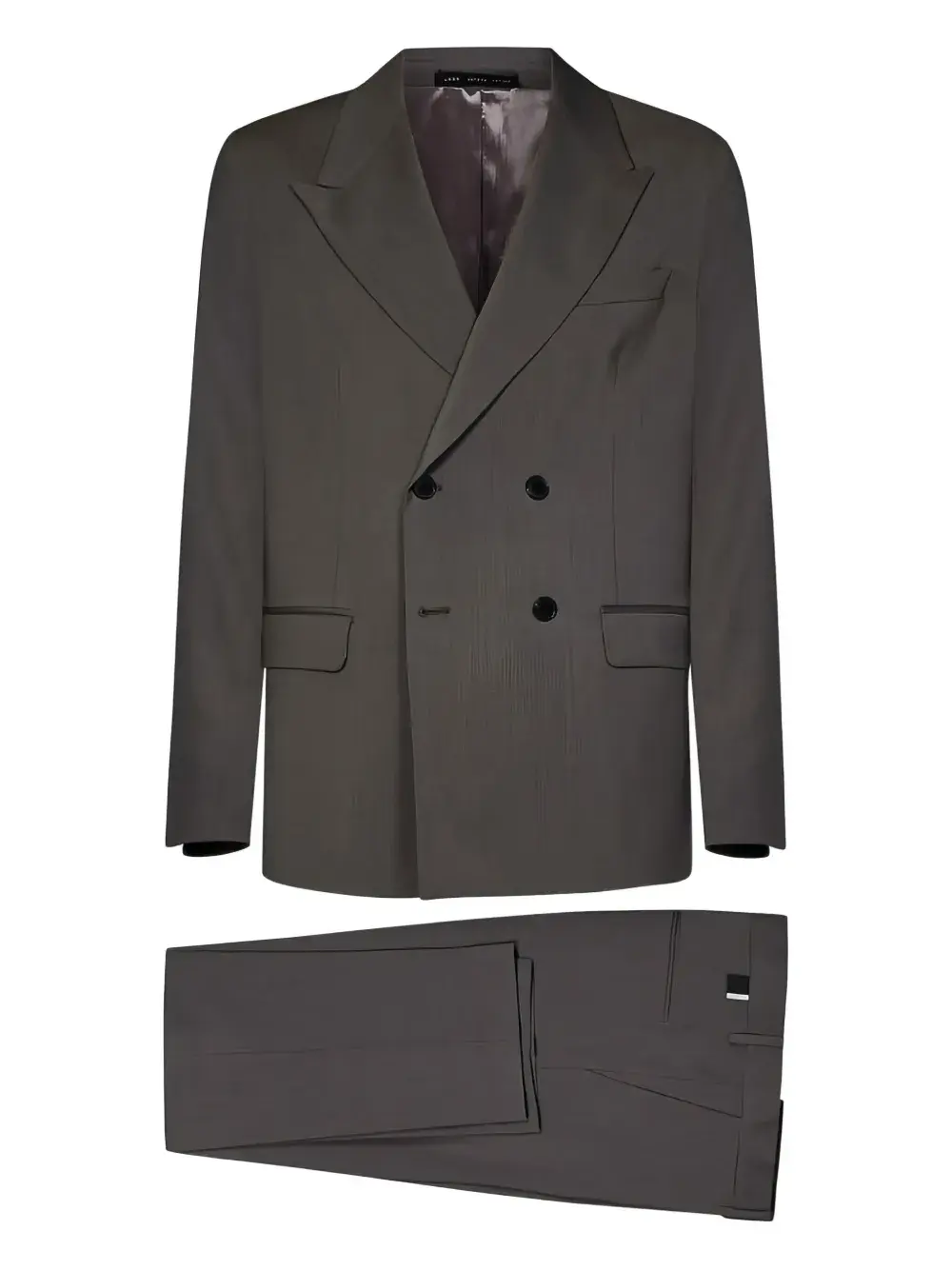 Темно-серые двубортные пиджаки с заостренными лацканами и карманами с клапанами