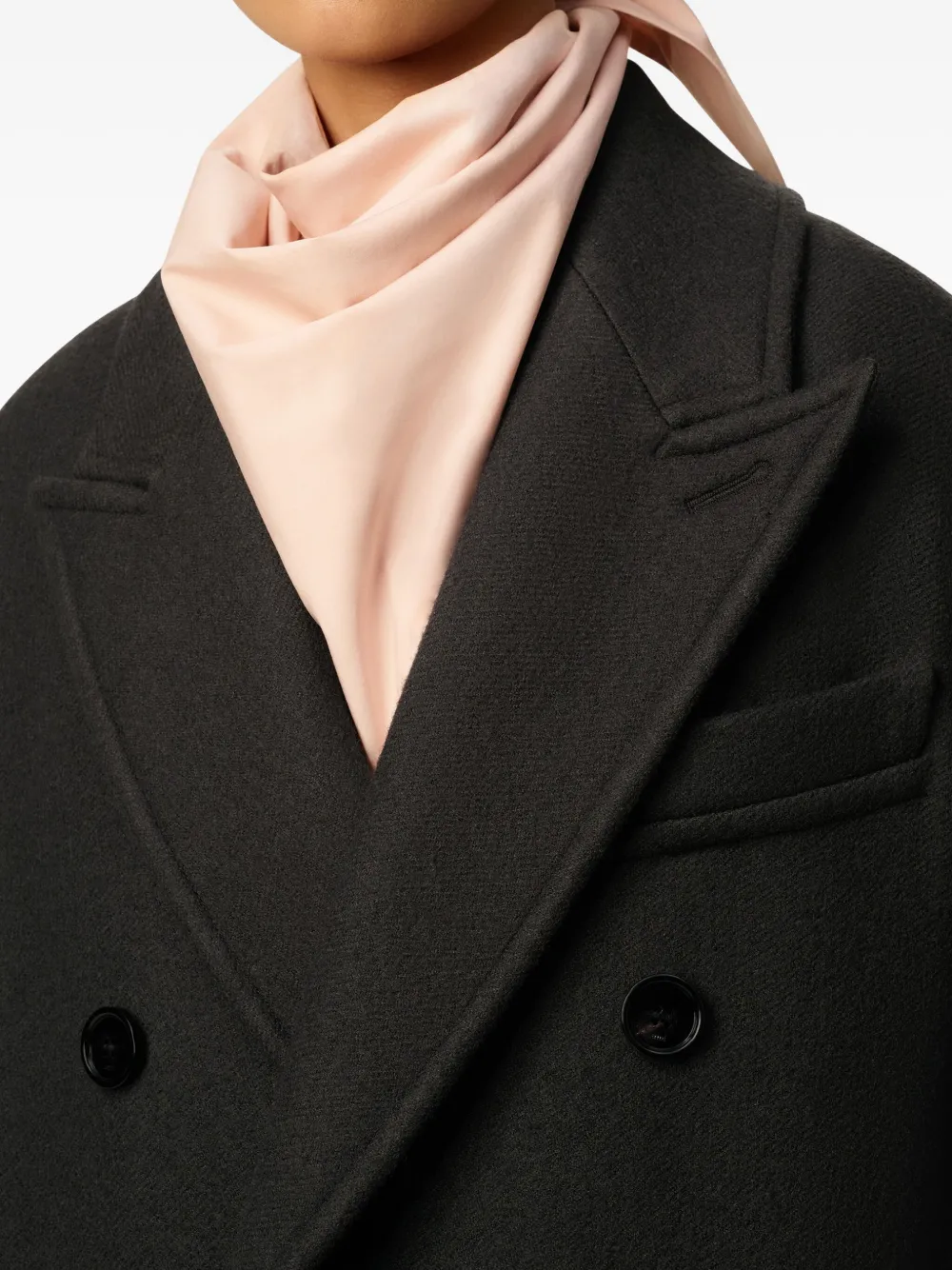 Двубортное шерстяное пальто AMI Paris, черный 127 551₽