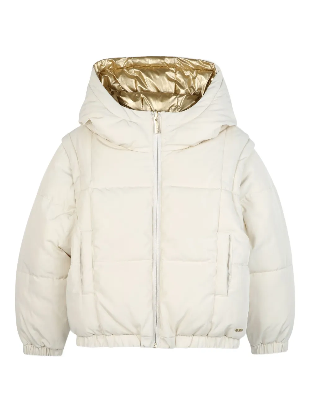 Двусторонний пуховик с эффектом металлик BOSS Kidswear, белый
