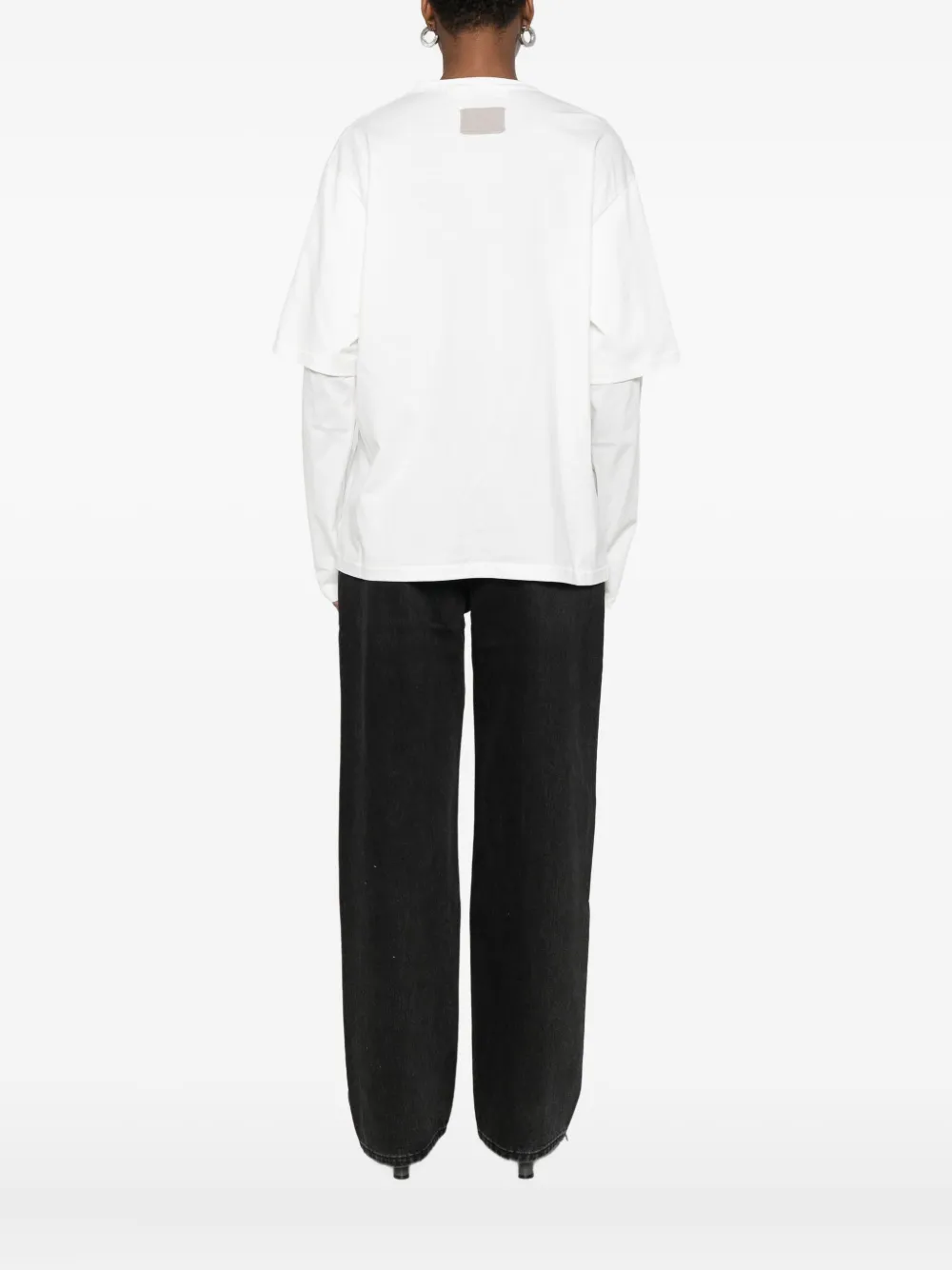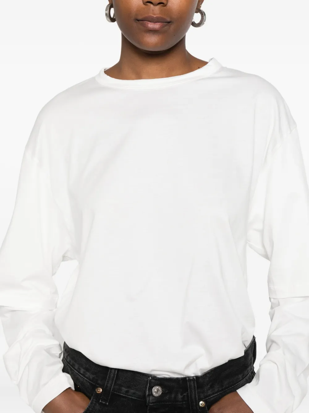 Белоснежный хлопок с двойными рукавами и круглым вырезом