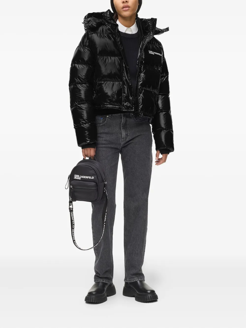 Пуховик с капюшоном Karl Lagerfeld Jeans, черный