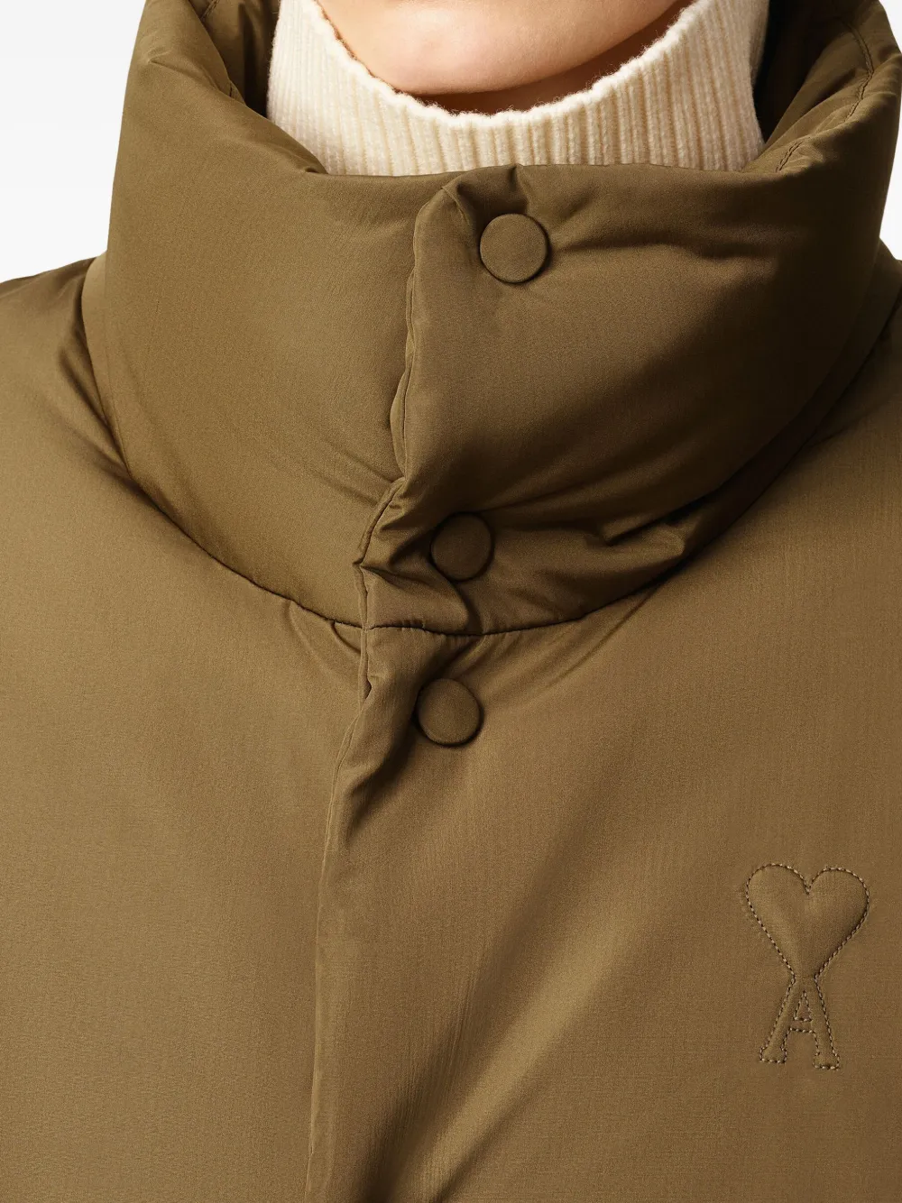 Пуховик с тисненым логотипом AMI Paris, зеленый