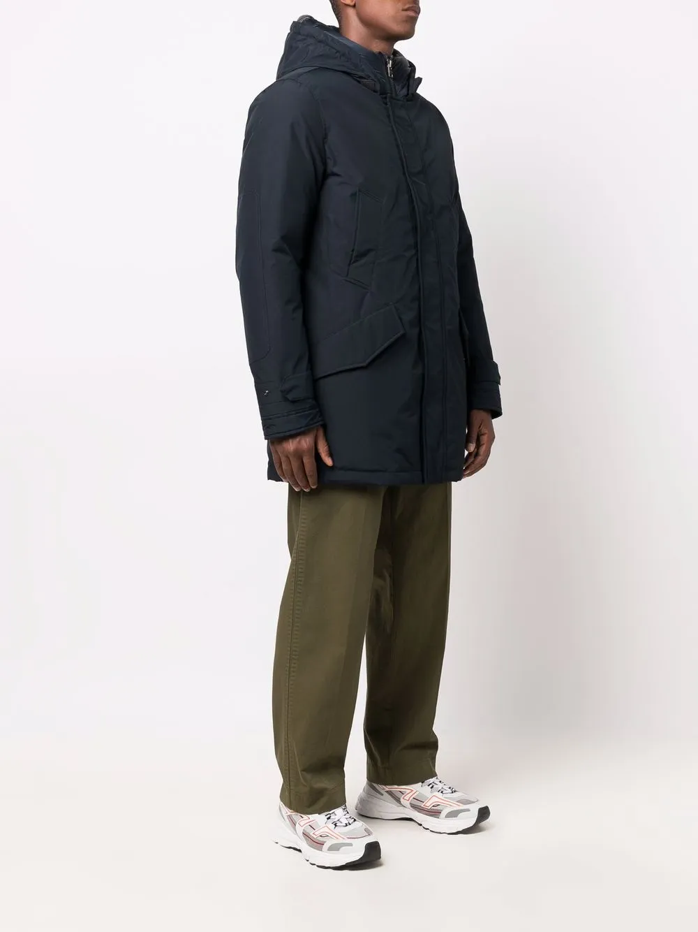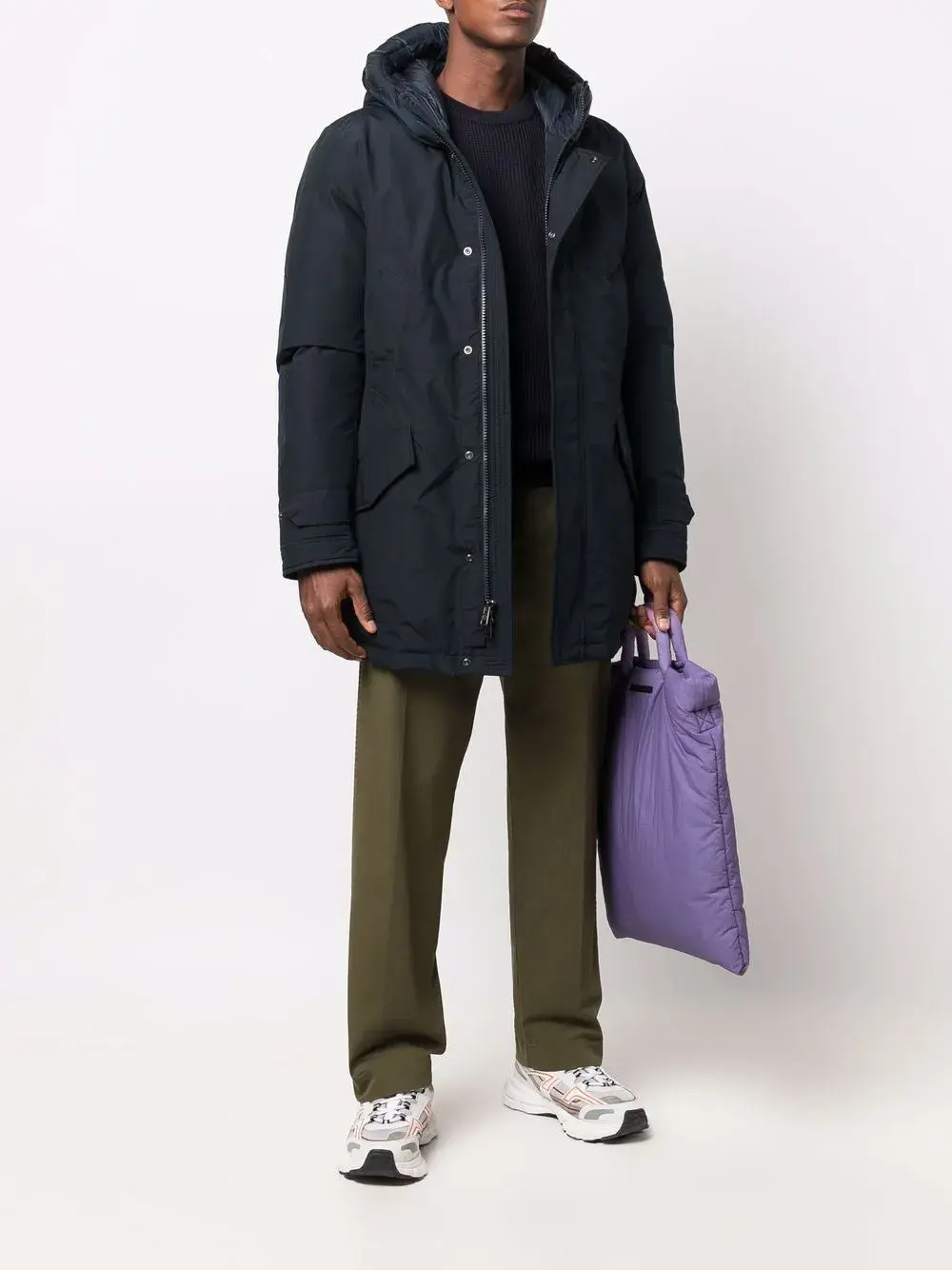 Пуховик на молнии с капюшоном WOOLRICH, синий