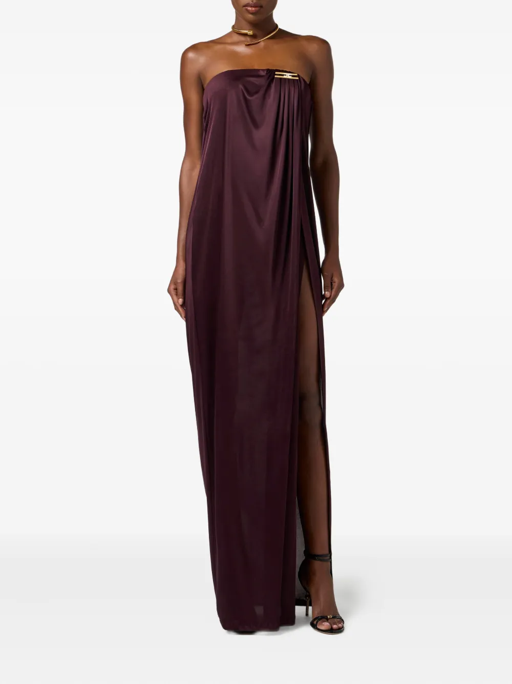 Платье макси из драпированного джерси Elisabetta Franchi, коричневый