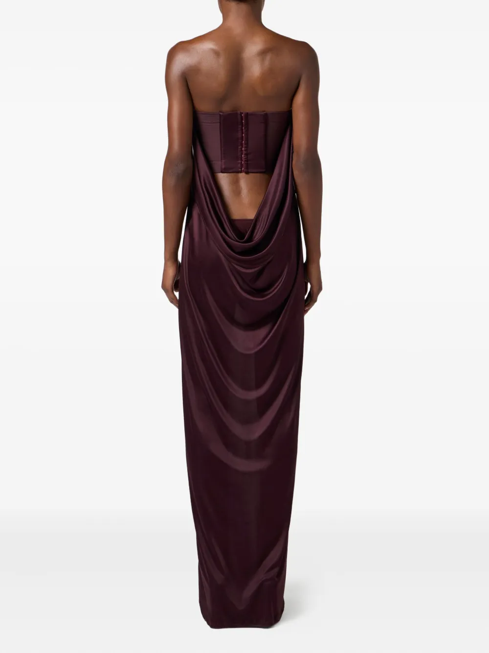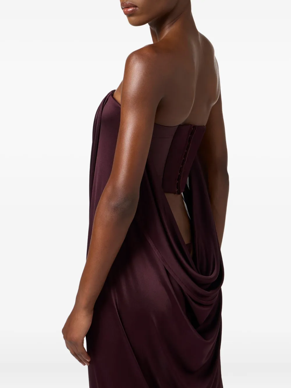 Трикотажная ткань Merlot с вырезом без бретелек, асимметричной драпировкой и разрезом до бедра