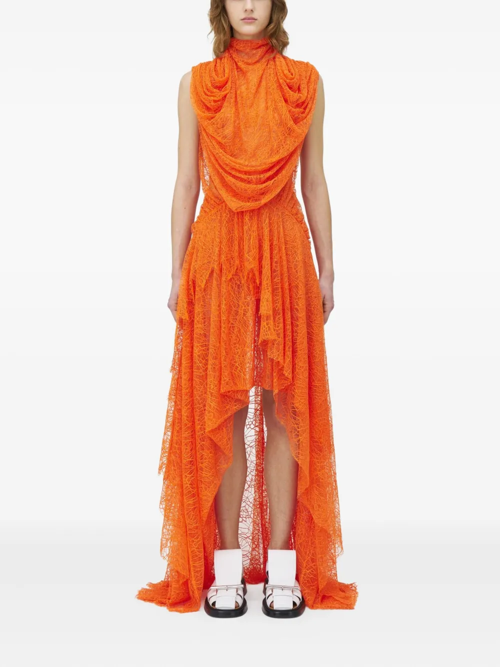 Платье с драпированным кружевом Alexander McQueen, оранжевый