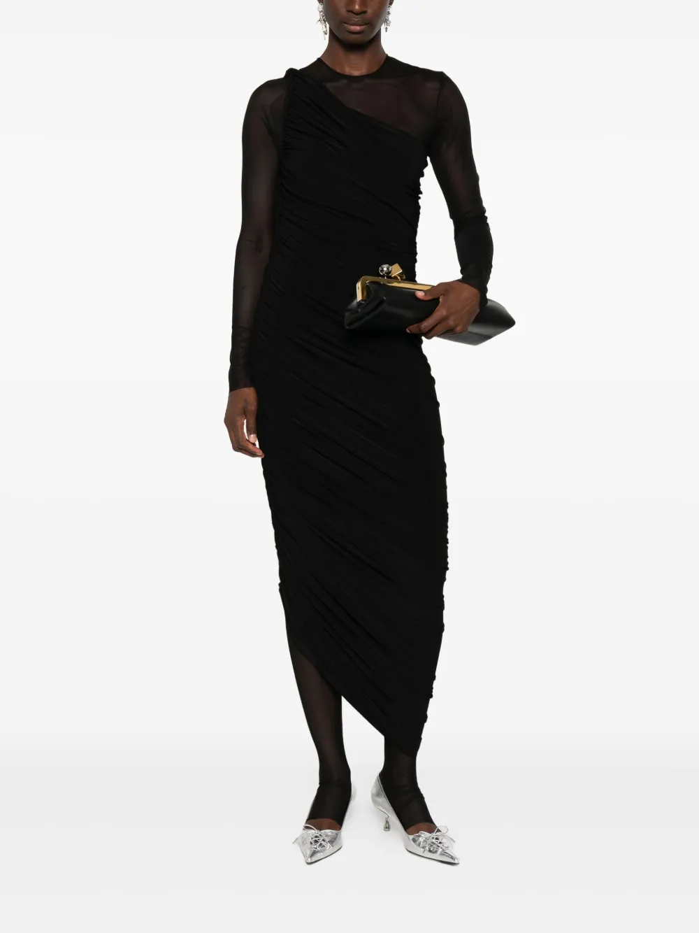 Драпированное платье миди с длинными рукавами Norma Kamali, черный 76 497₽
