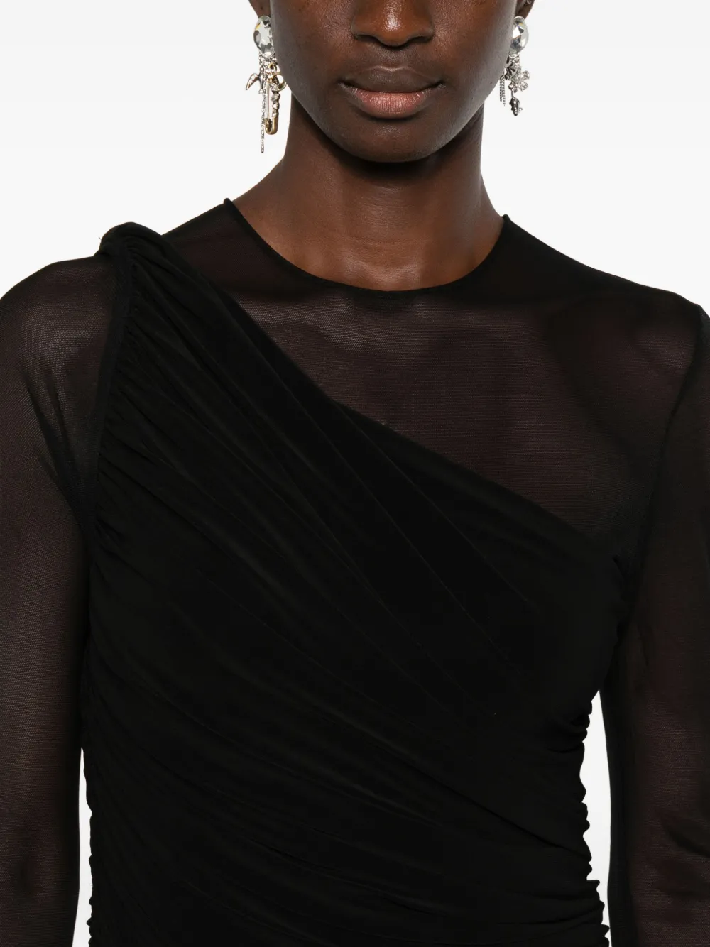 Драпированное платье миди с длинными рукавами Norma Kamali, черный