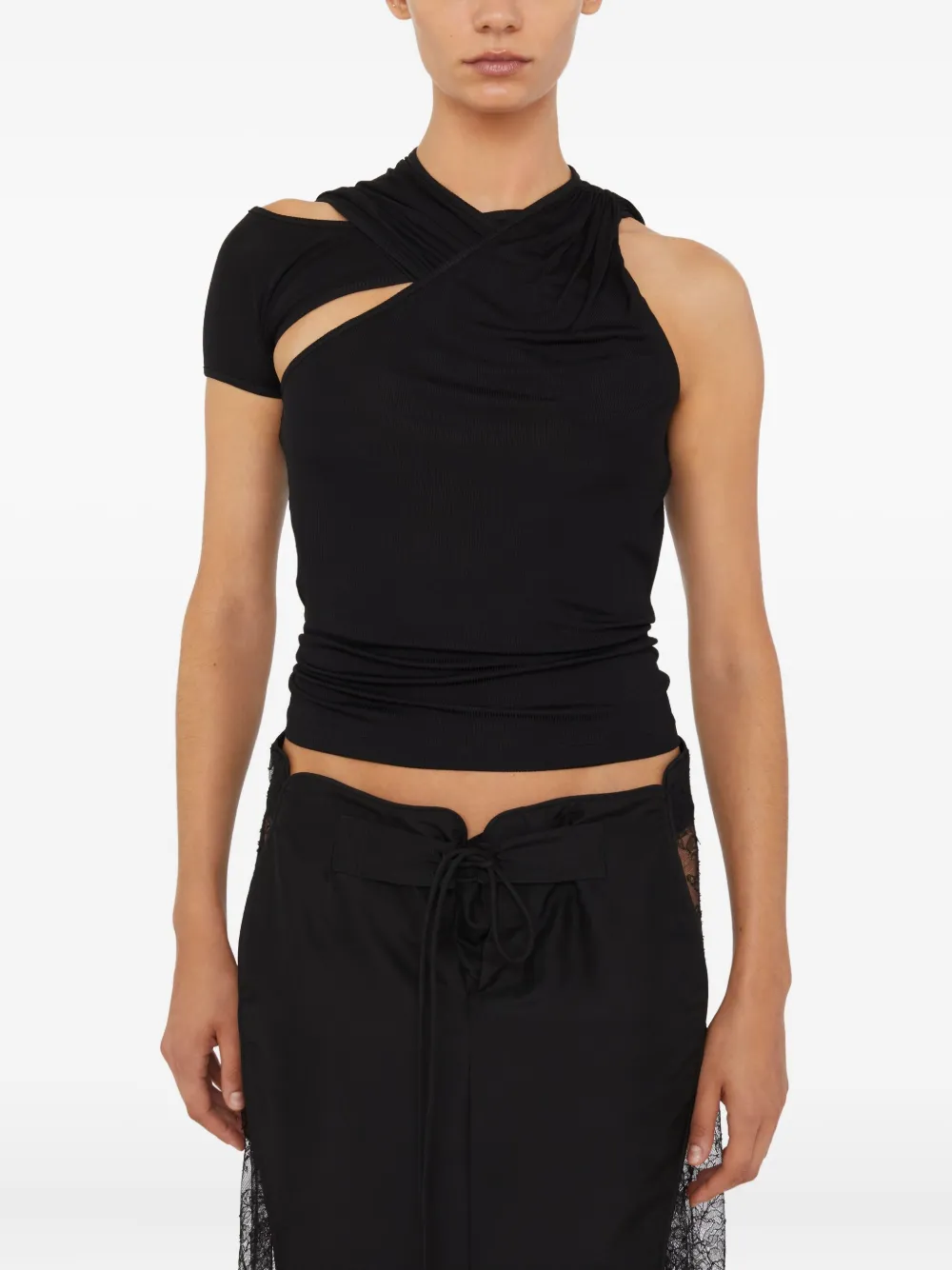 Топ с драпировкой на одно плечо в рубчик Christopher Esber, черный