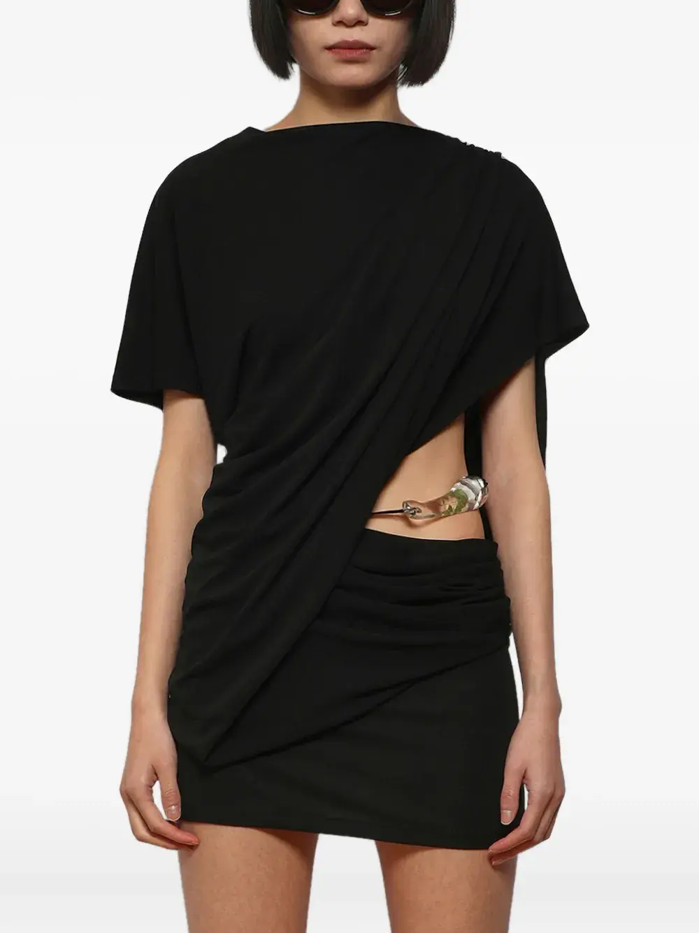 Драпированное мини-платье с отделкой из смолы Christopher Esber, черный