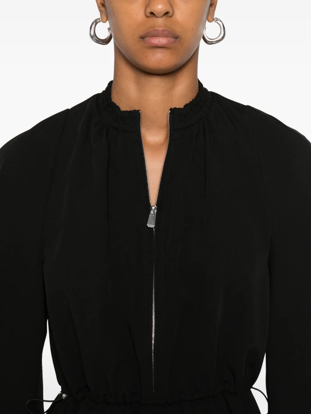 Черная застежка-молния спереди, завязка на талии, эластичные манжеты.