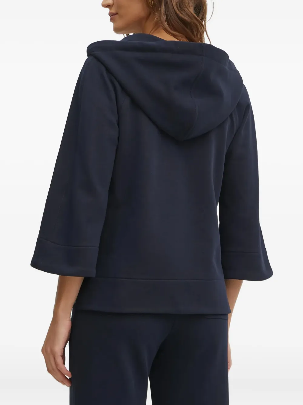 Темно-синий капюшон на шнурке, рукава три четверти