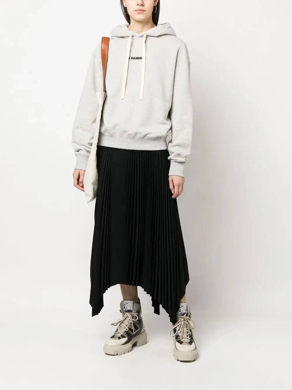 Худи с кулиской и логотипом JIL SANDER, серый