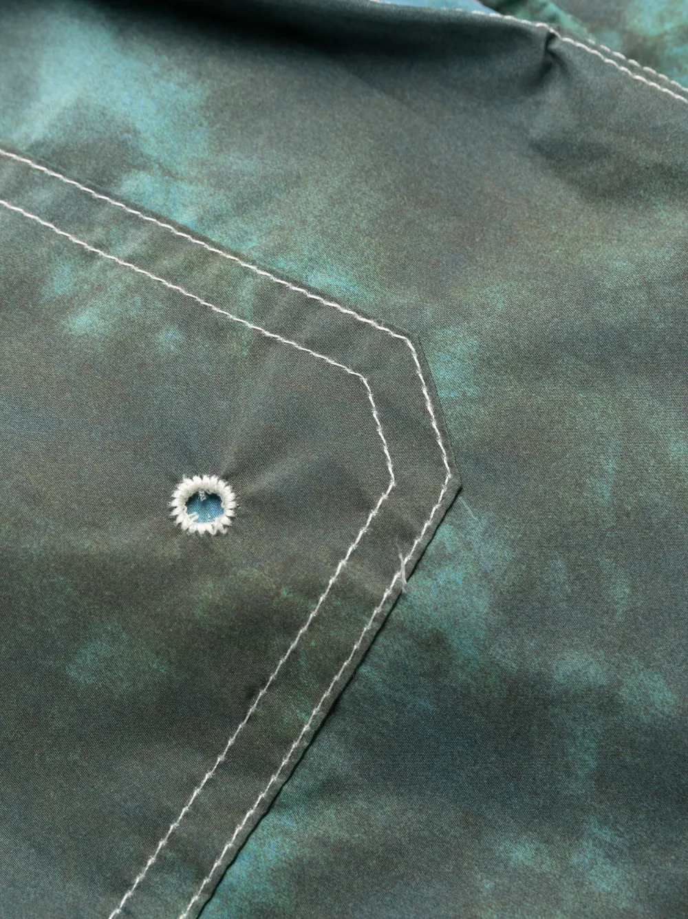 Голубой, принт тай-дай, кулиска на талии, карман с клапаном сзади и прямой подол. Пожалуйста, примеряйте купальники и пляжные шорты только поверх собственного белья.