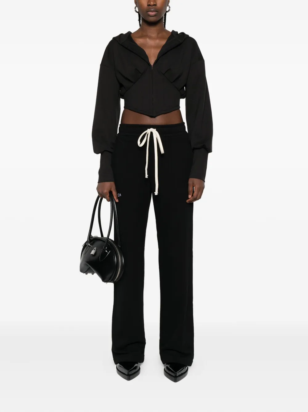 Черный хлопковый жакет с завязкой на шнурке, широкий брючин, прямой подол