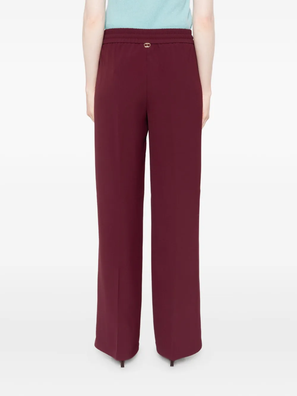 Бордовый шнурок на талии, заутюженная складка, аппликация с логотипом