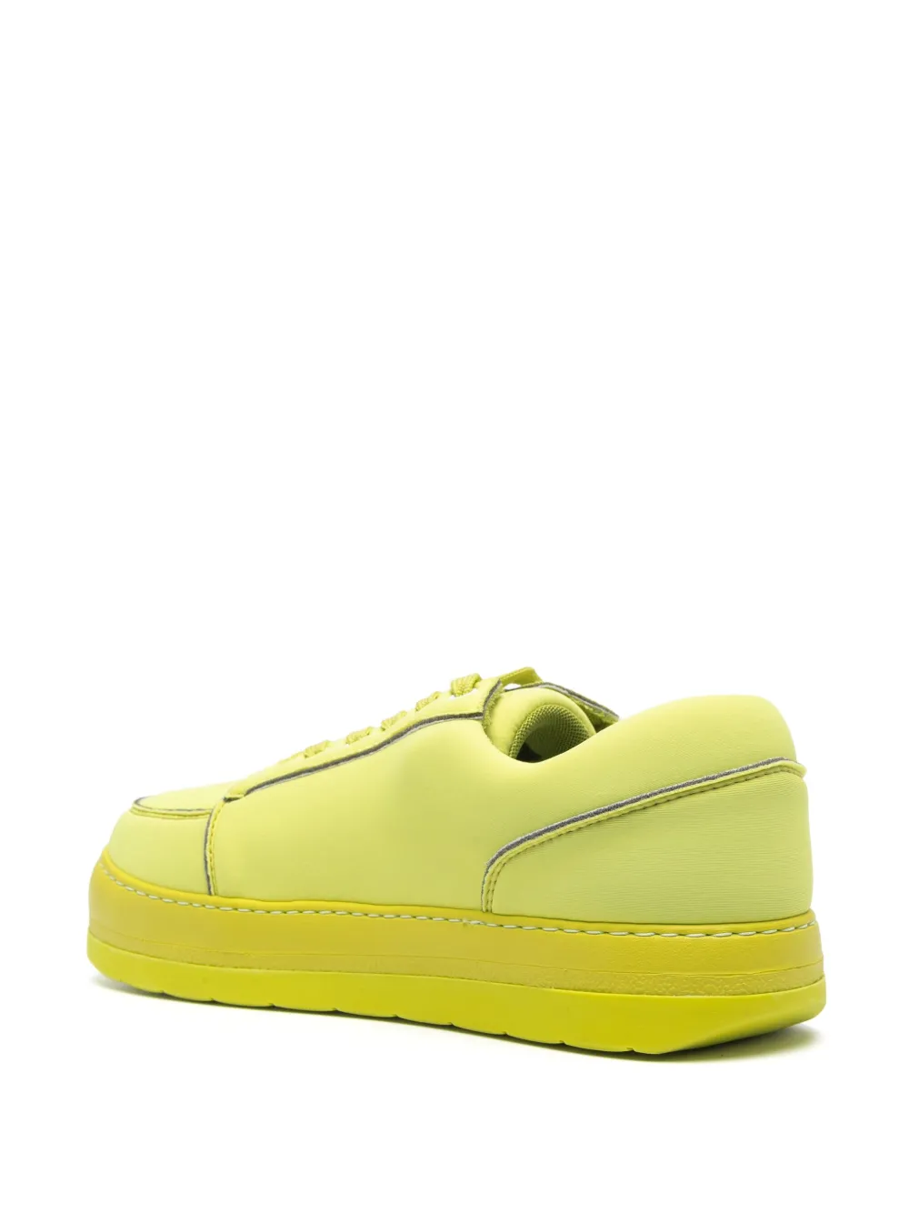 Салатовый, маленькая подвеска с логотипом, шнуровка спереди, закругленный носок, стелька с логотипом, плоская платформа и резиновая подошва.