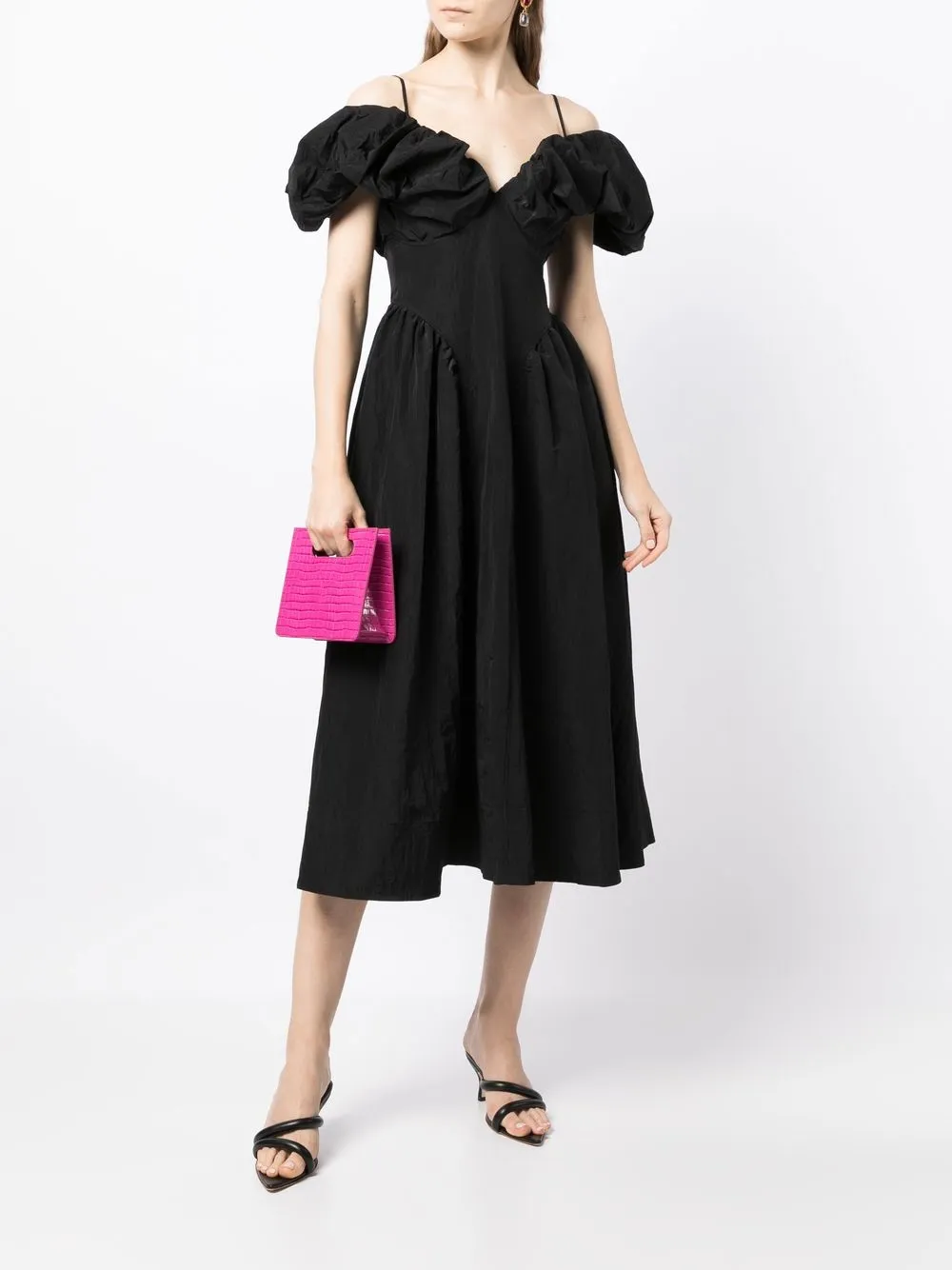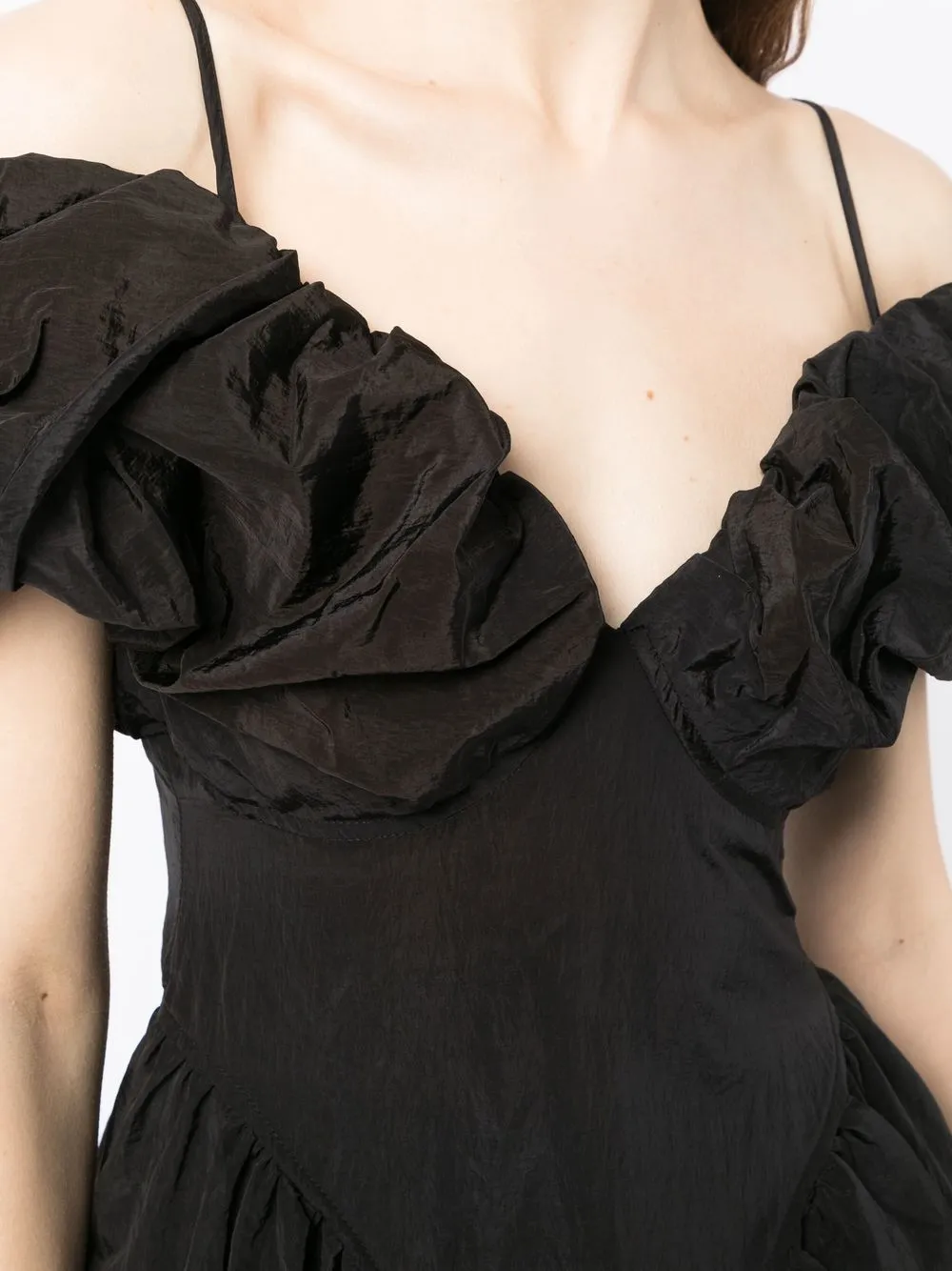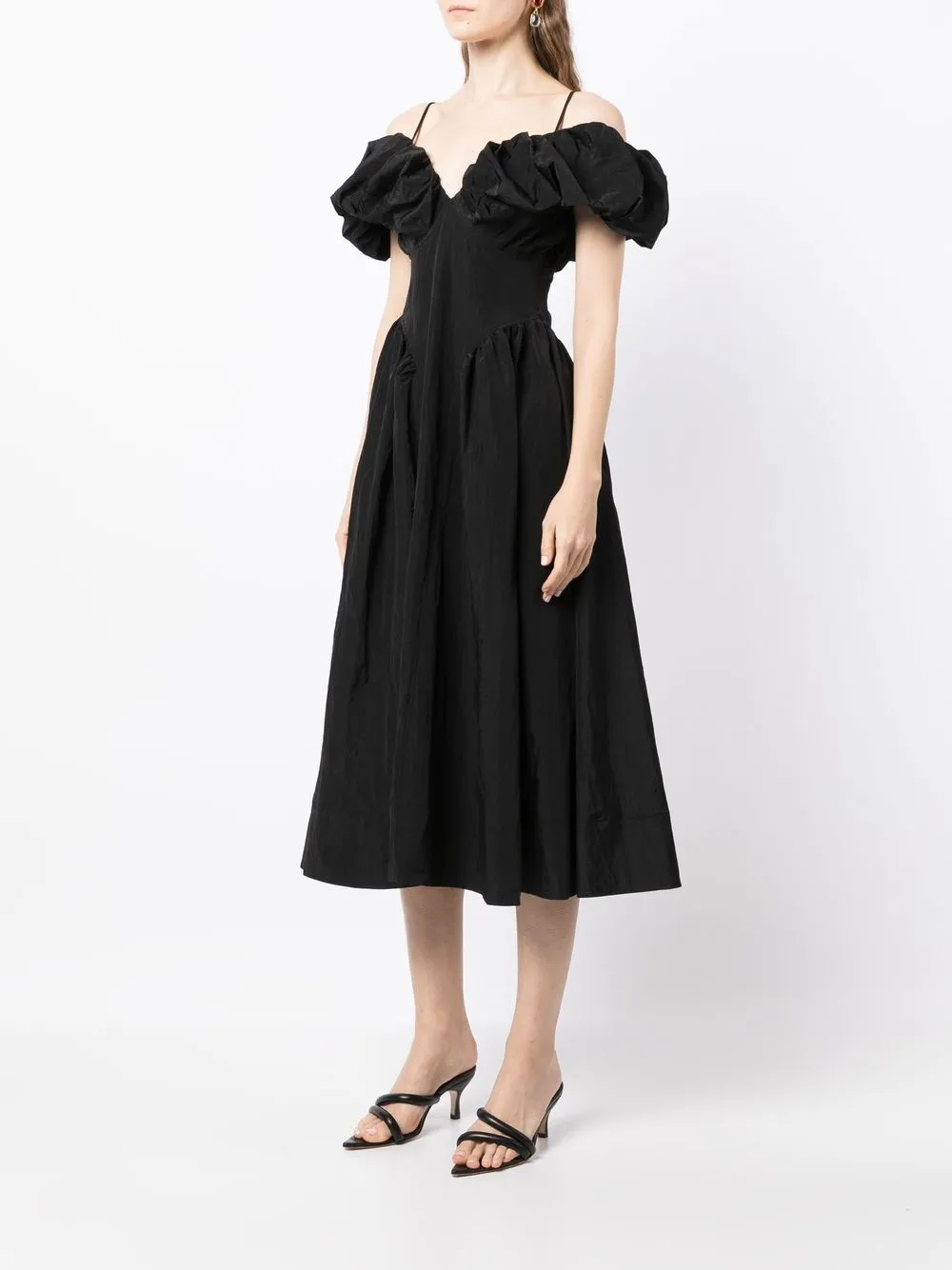 Детали с оборками, тонкие бретели, короткие рукава и длина миди. Ответственный выбор: Мы объединились с агентством Good On You, которое оценивает бренды по степени их влияния на животных, людей и планету в целом. Этот бренд минимизирует негативное влияние на окружающую среду, поэтому получил хорошую оценку.