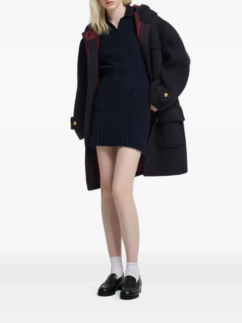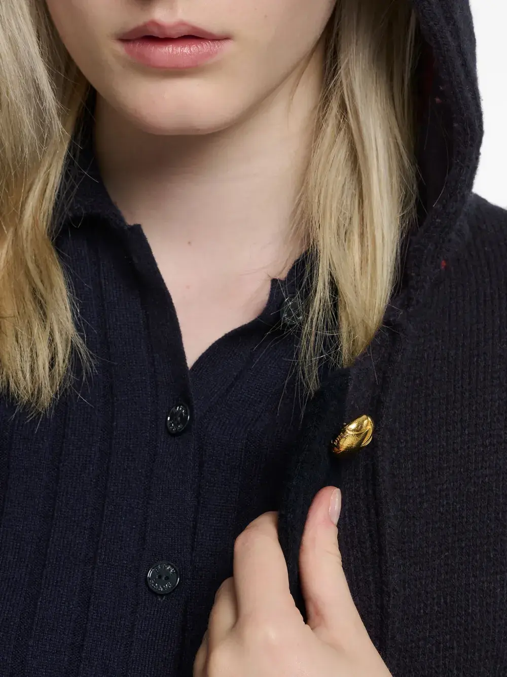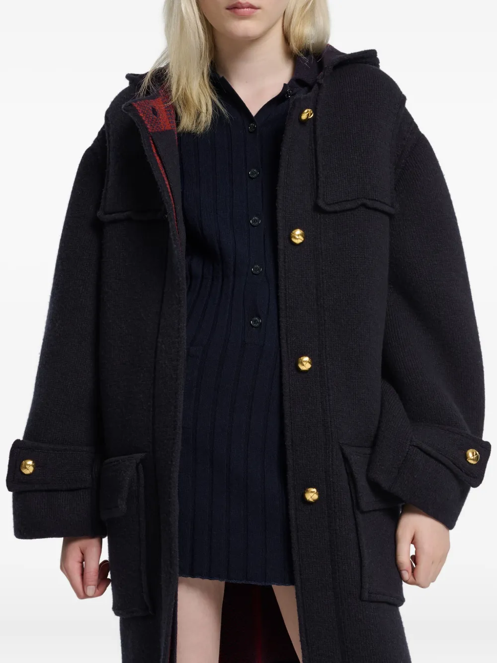 Черная шерстяно-кашемировая смесь, накладные карманы, капюшон