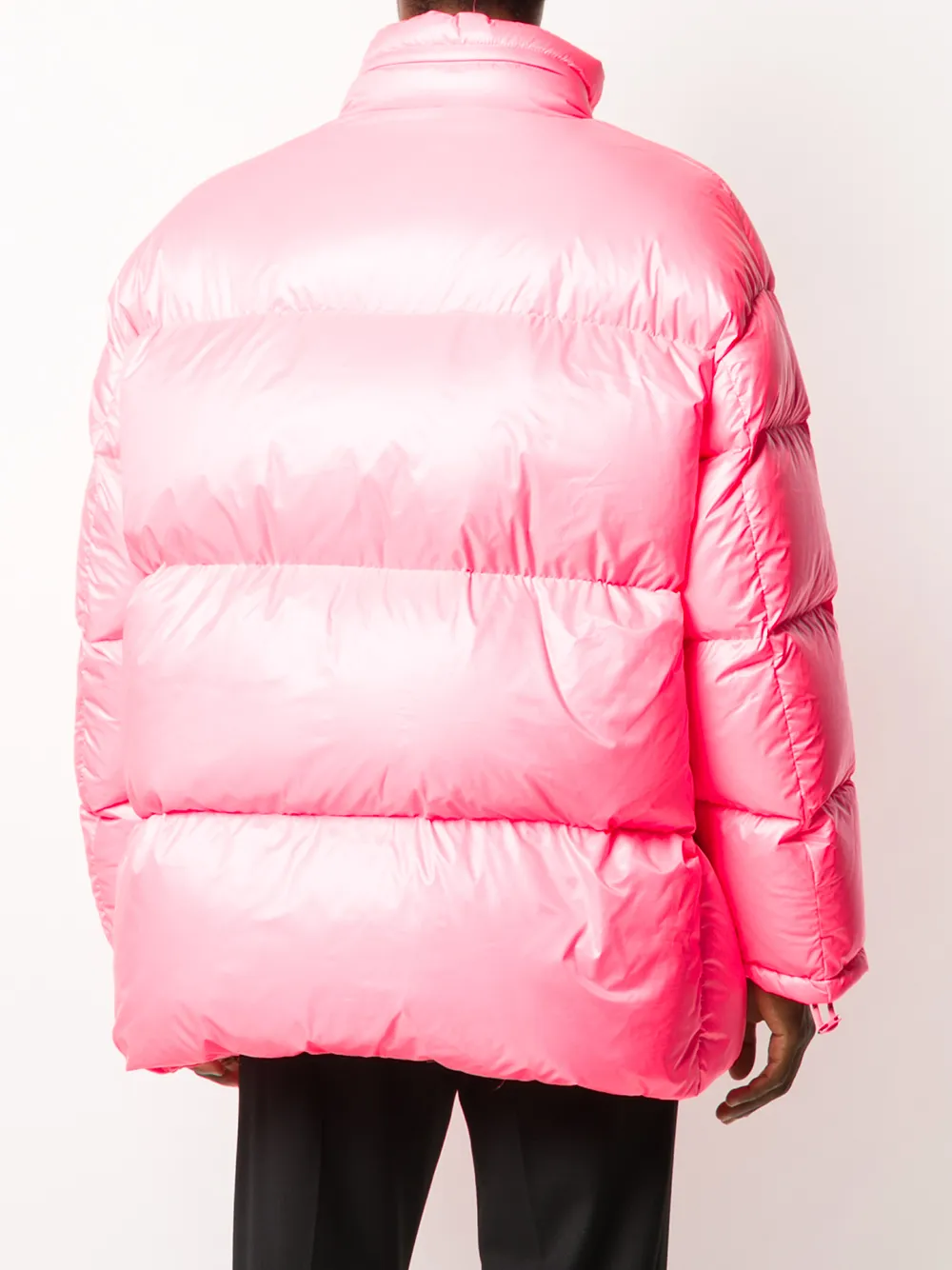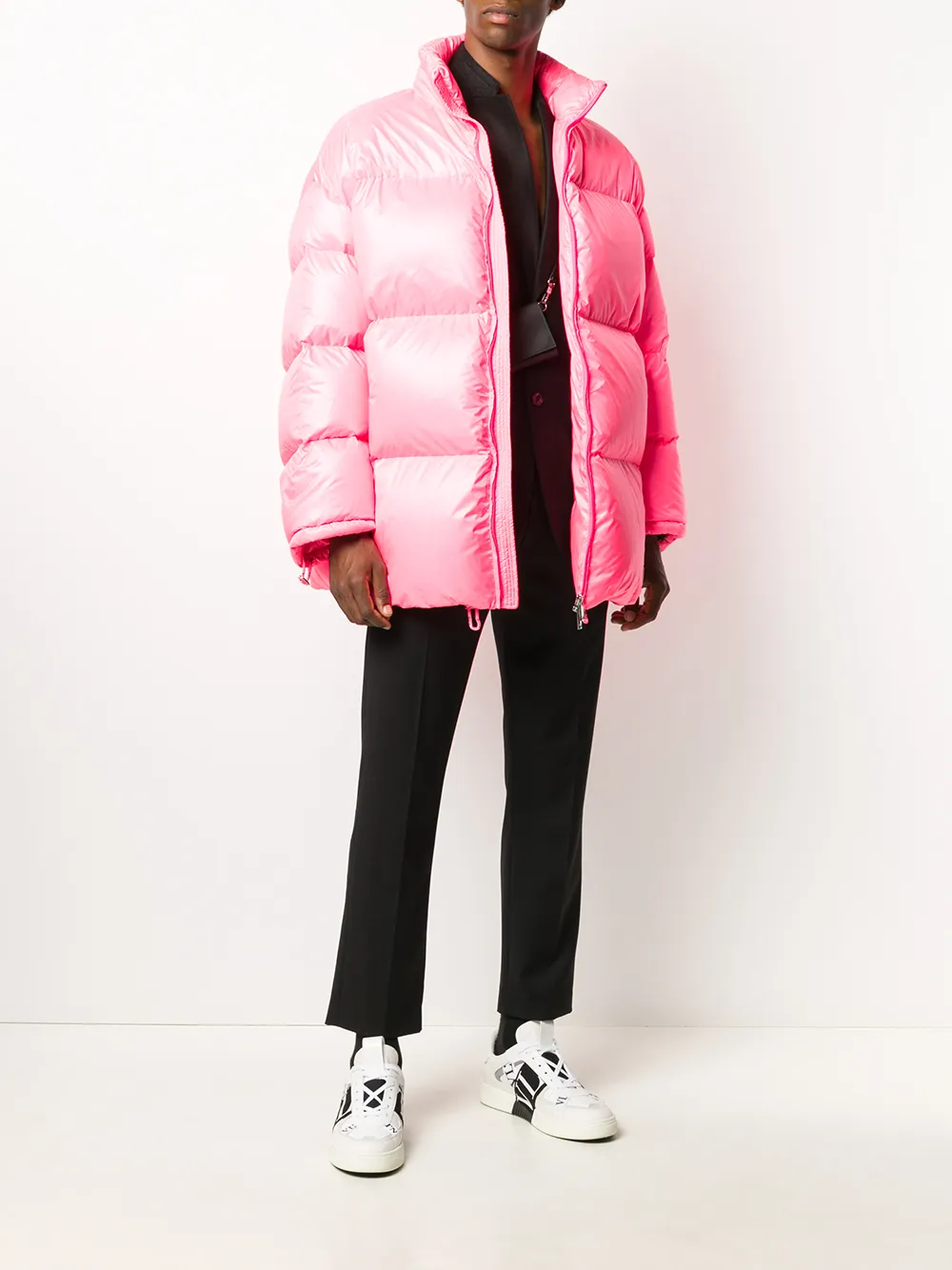 Пуховик Duvet от Valentino (Валентино). Воротник с высокой стойкой, длинные рукава, застежка на молнии спереди, боковые карманы и свободный крой. Цвет: розовый.