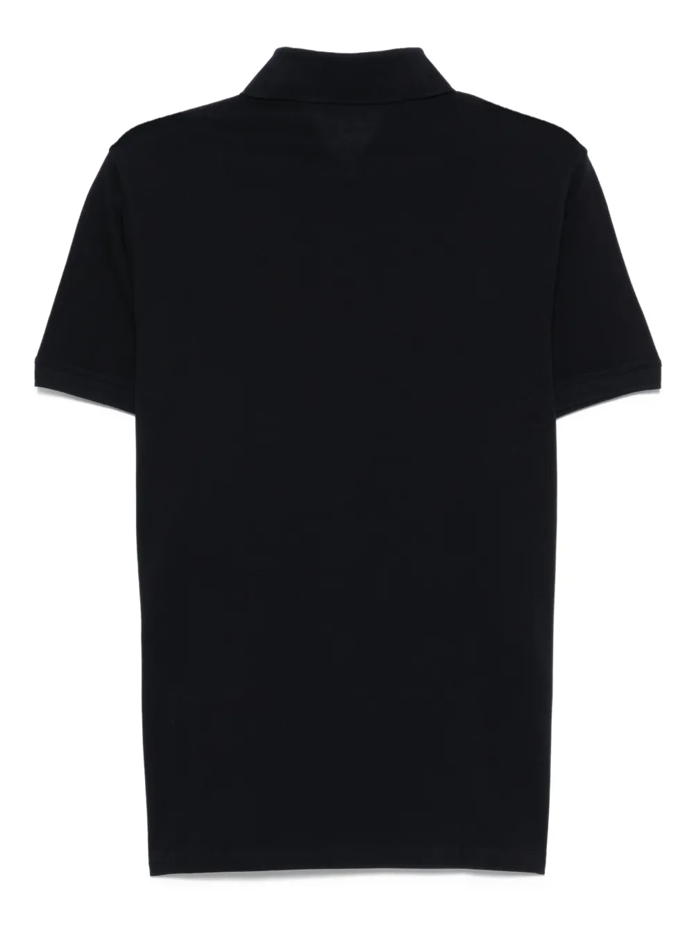 Темно-синие короткие рукава, воротник-поло, планка с тремя пуговицами, вышитая эмблема орла, хлопчатобумажный материал
