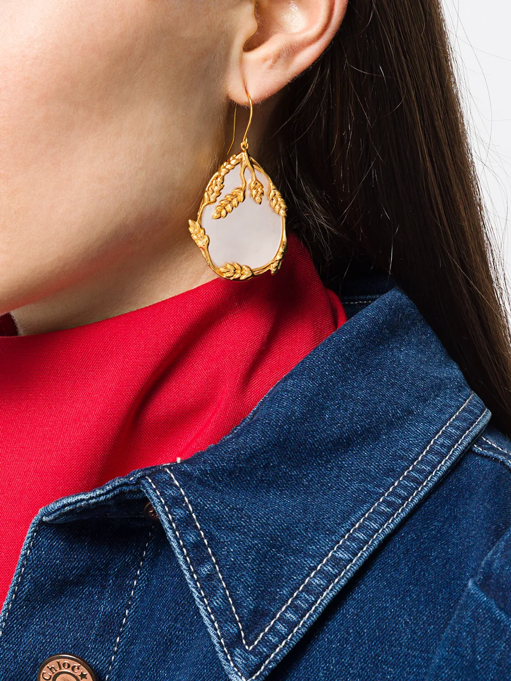 Серьги Francoise от Aurelie Bidermann. Застежка на крючок, медная фурнитура, позолоченная фурнитура и инкрустация из перламутра.
