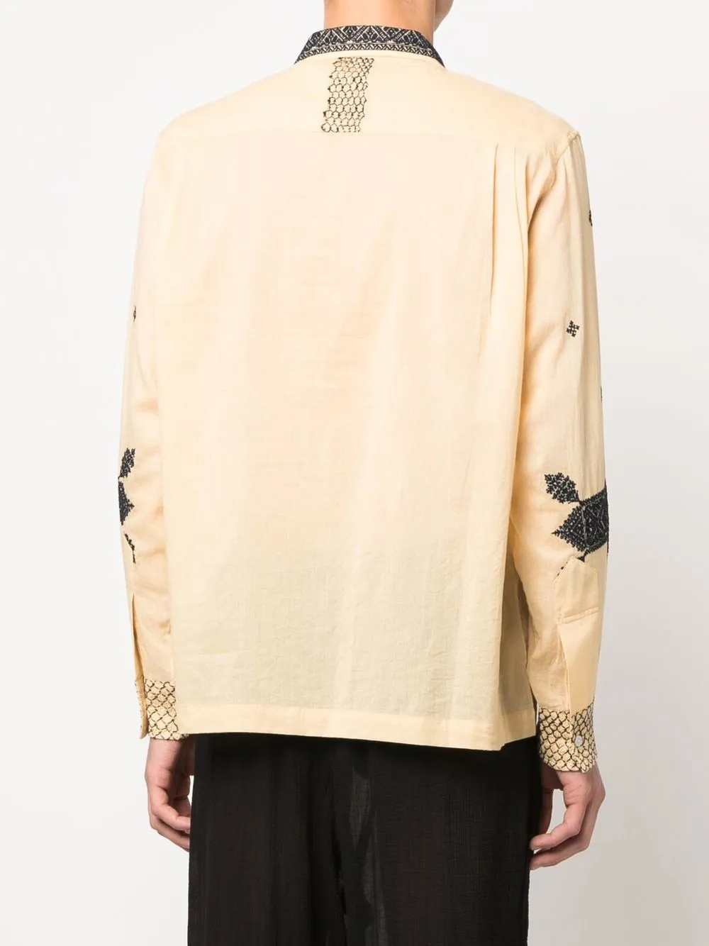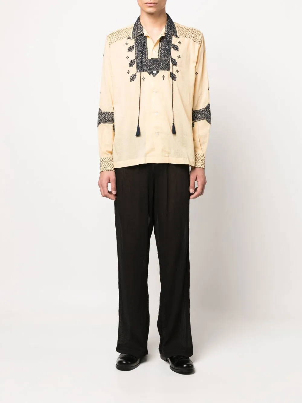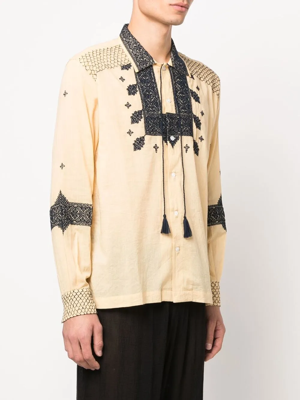 Экрю, хлопок, вышивка, декоративные кисточки, классический воротник, длинные рукава, манжеты на пуговицах и застежка на пуговицах спереди. Ответственный выбор: Мы объединились с агентством Good On You, которое оценивает бренды по степени их влияния на животных, людей и планету в целом. Этот бренд минимизирует негативное влияние на окружающую среду, поэтому получил хорошую оценку.