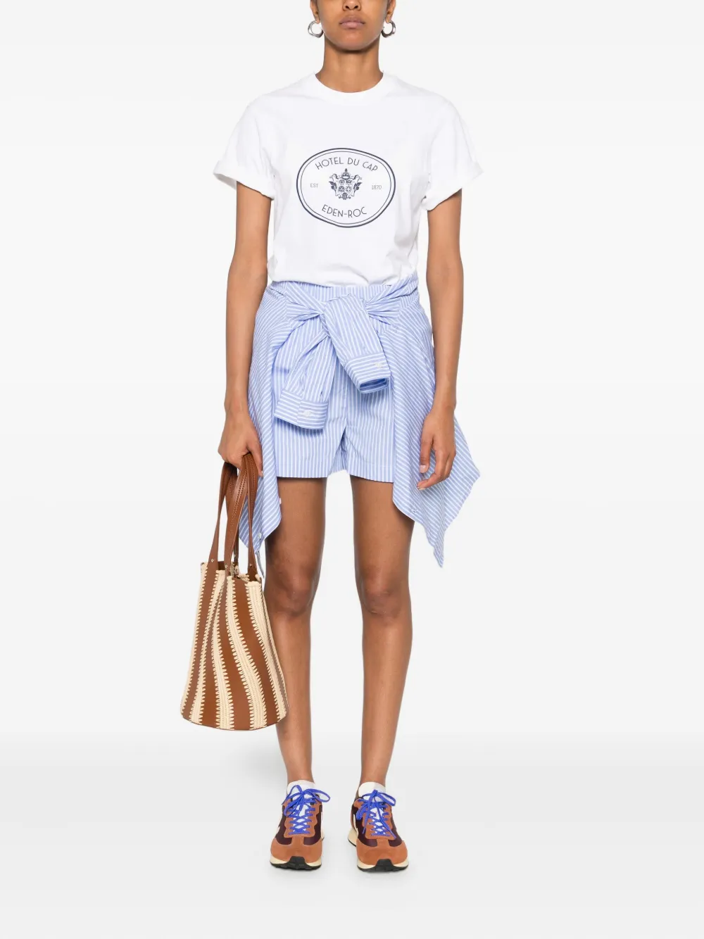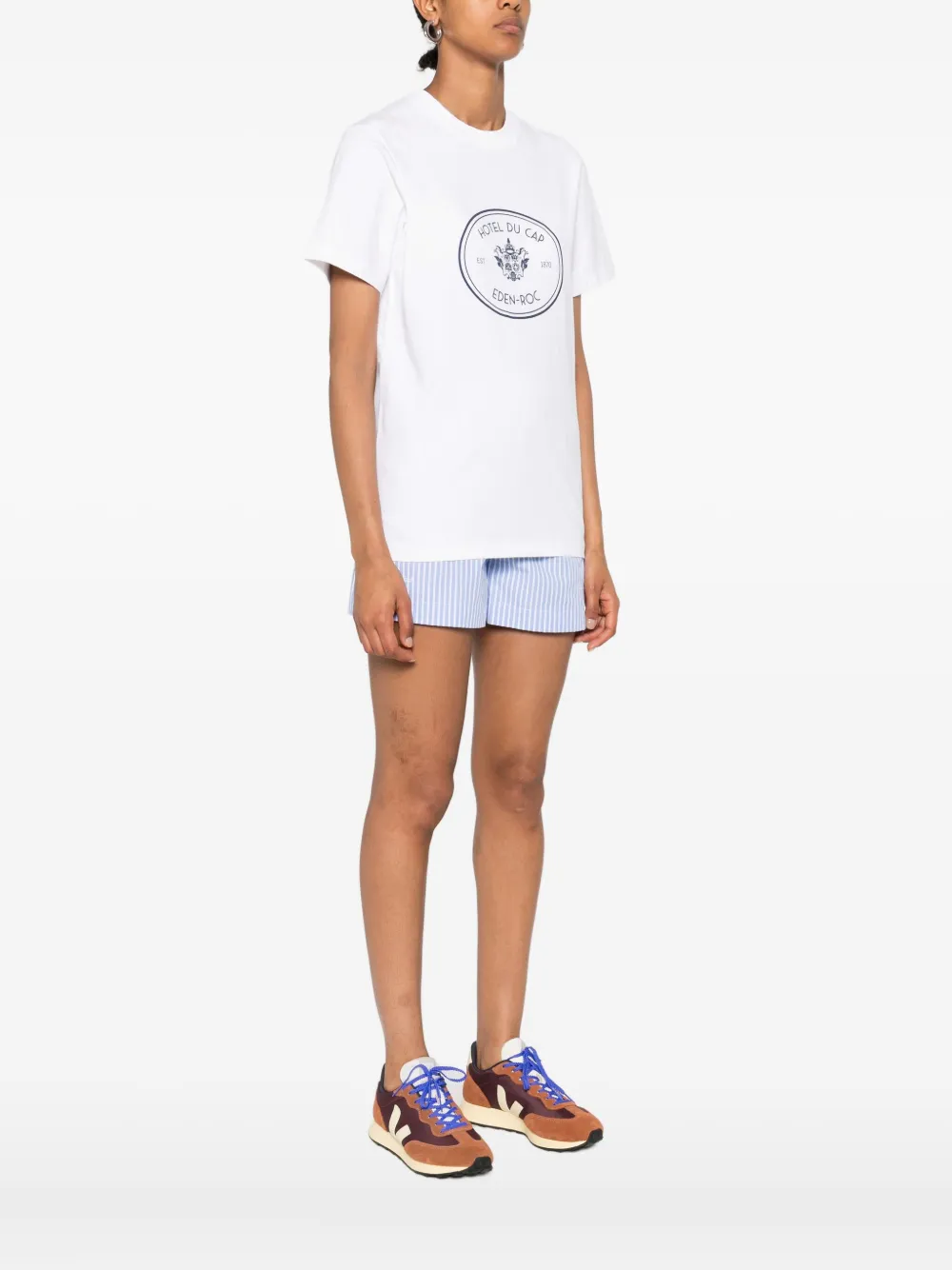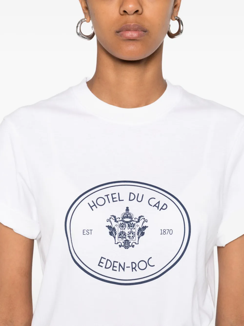 Белый круглый вырез, короткие рукава, овальный графический принт, центральное расположение, эмблема отеля du cap eden-roc