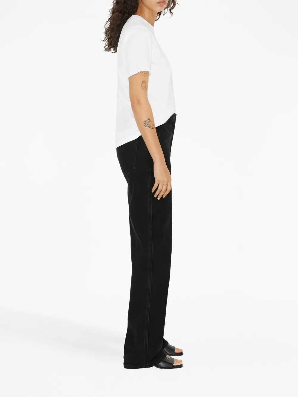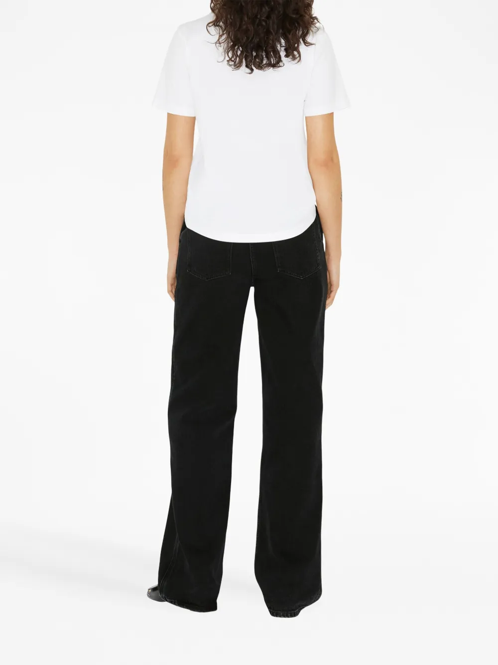 Белый, хлопок, ткань джерси, графичный принт спереди, круглый вырез, короткие рукава и прямой подол.