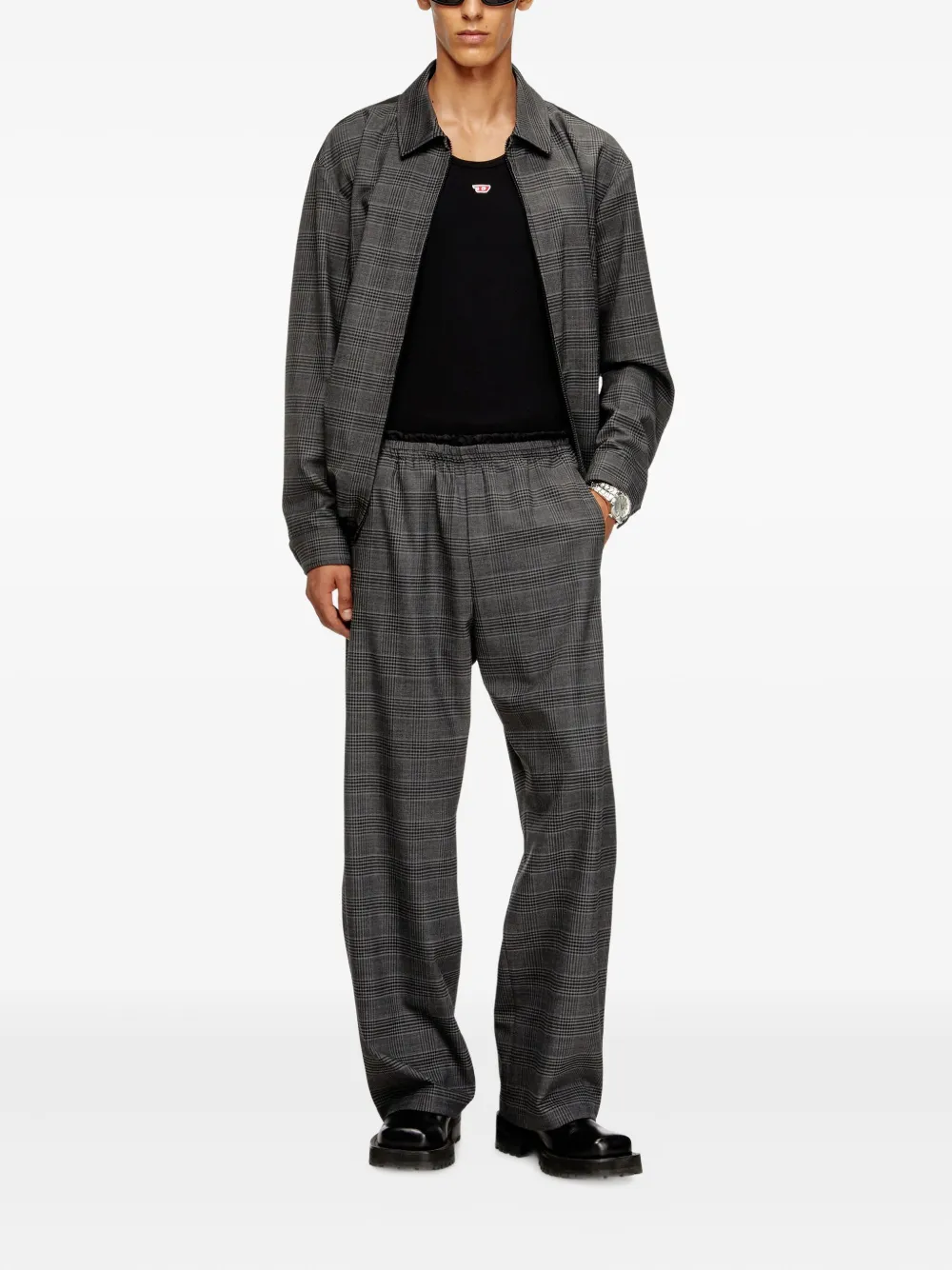 Клетчатые брюки с резинкой на талии DIESEL, серый