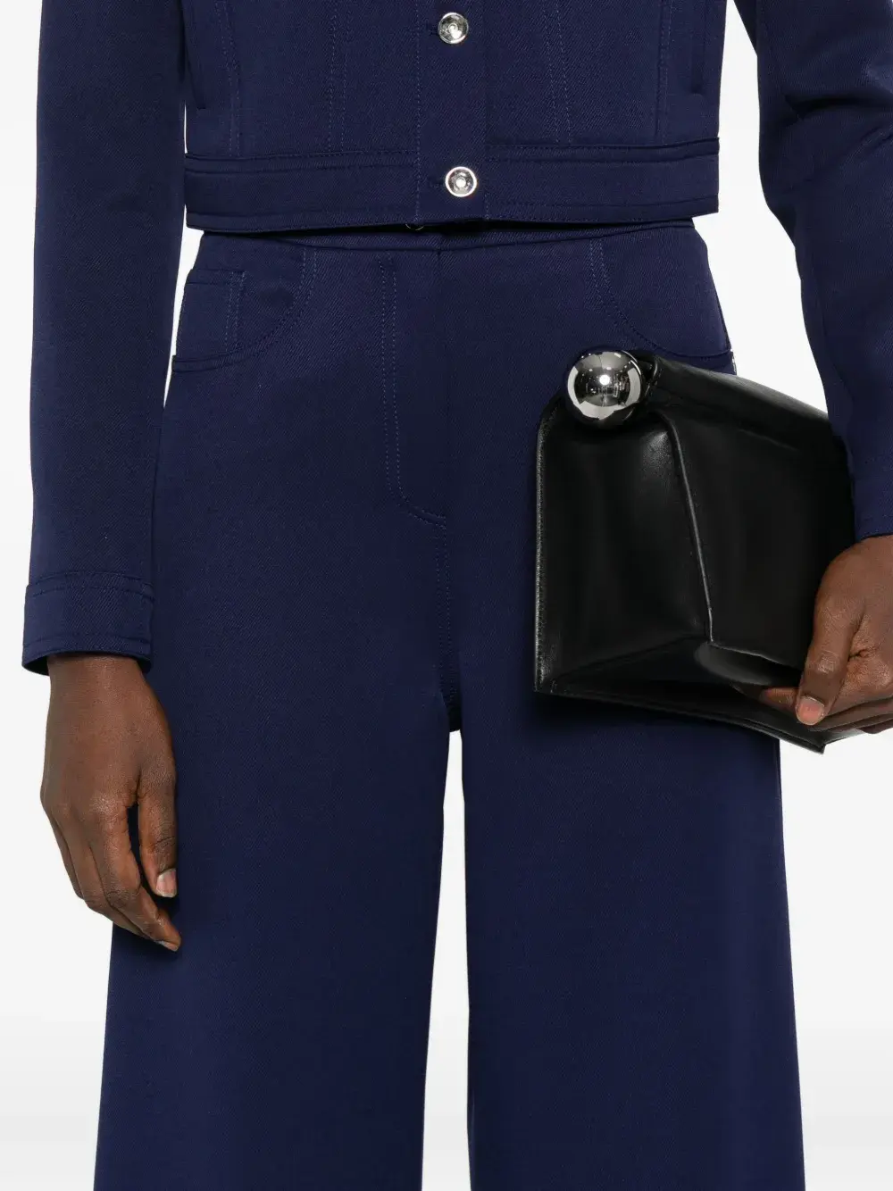 Вечерние синие брюки с широкими штанинами, высокой талией, передними карманами, застежкой на пуговицы сзади, эластичным поясом
