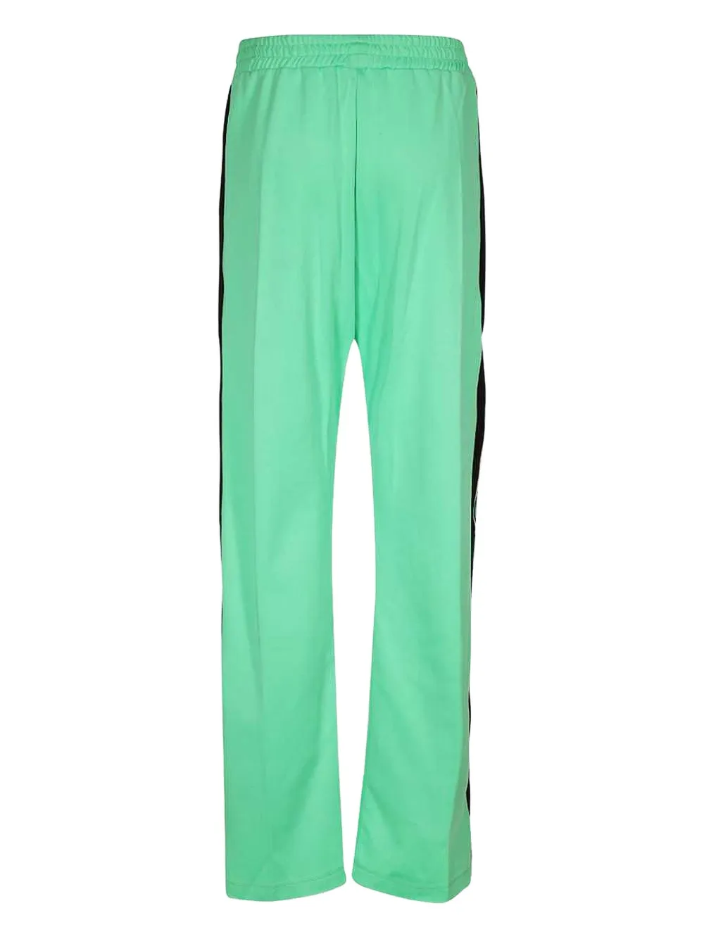 Светло-зеленый эластичный пояс, боковые полосы, подчеркивающие прямой крой штанины.