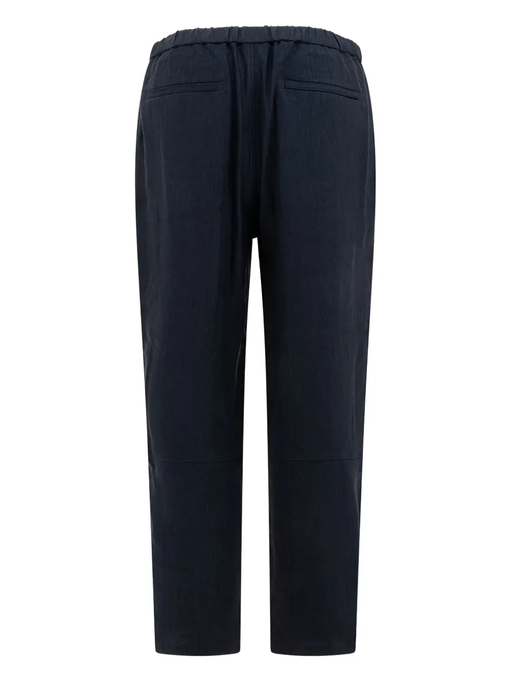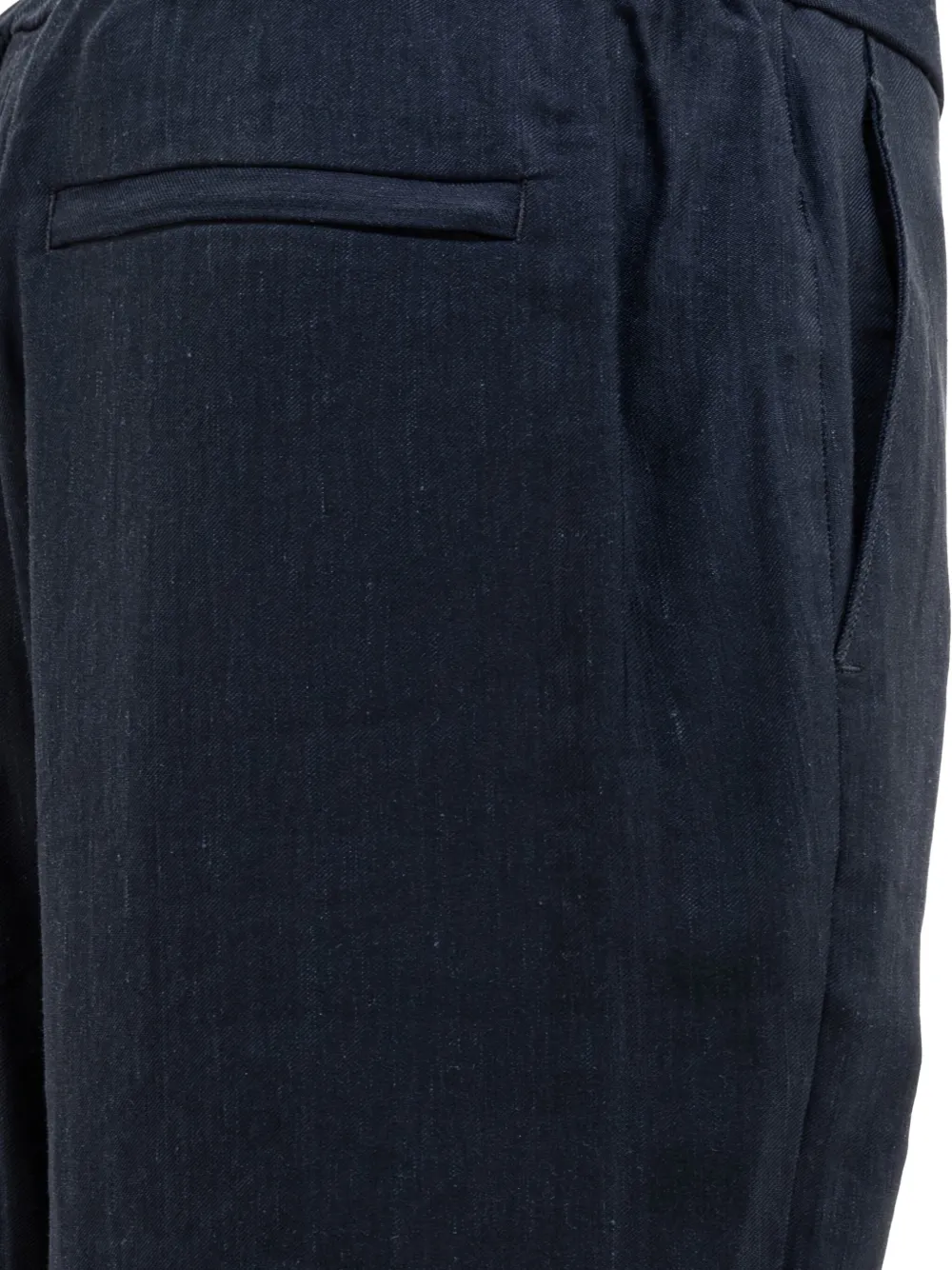Темно-синий эластичный пояс сзади, прорезные карманы сзади, прорезные карманы