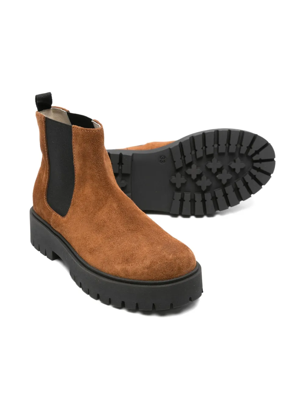 Верх из коричневой замши, платформа, эластичные боковые вставки, круглый носок, петля для подтягивания