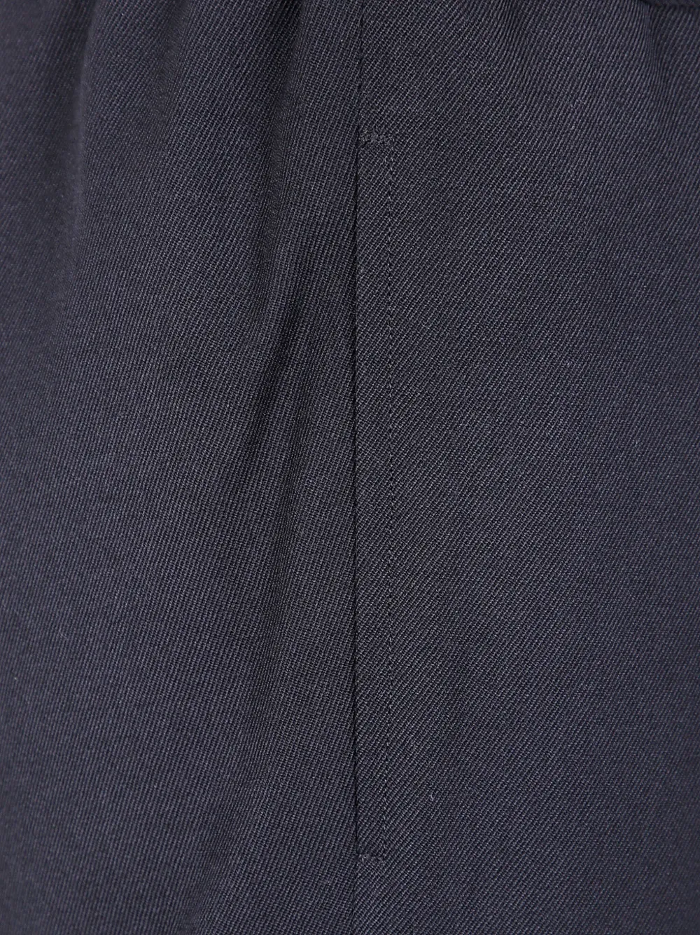 Черная шерстяная ткань, эластичный пояс, прямые штанины, боковые карманы