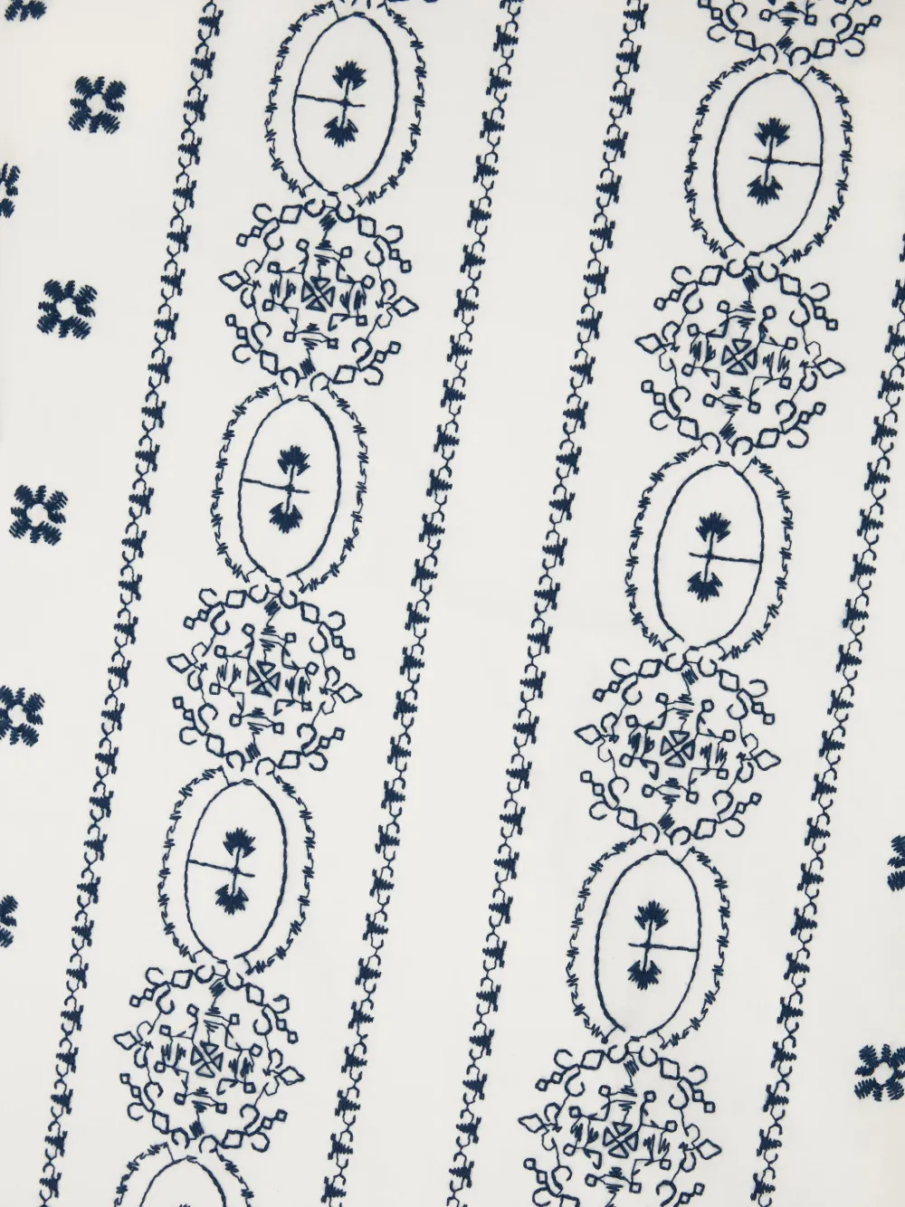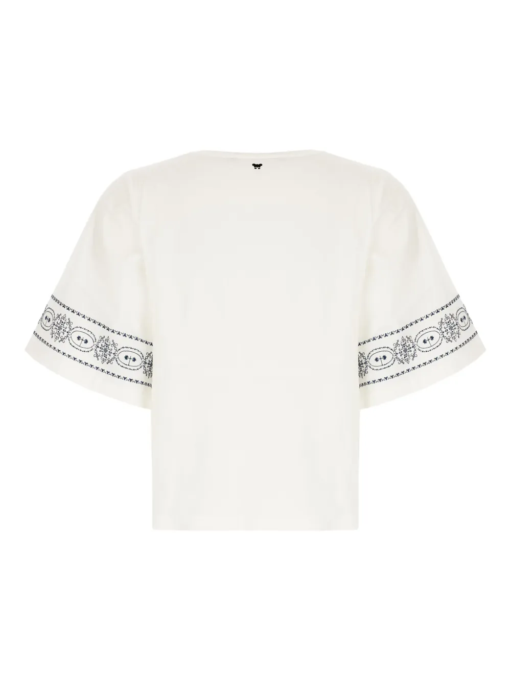 Белый вышитый узор, рукава-колокольчики, круглый вырез, короткие рукава, хлопок
