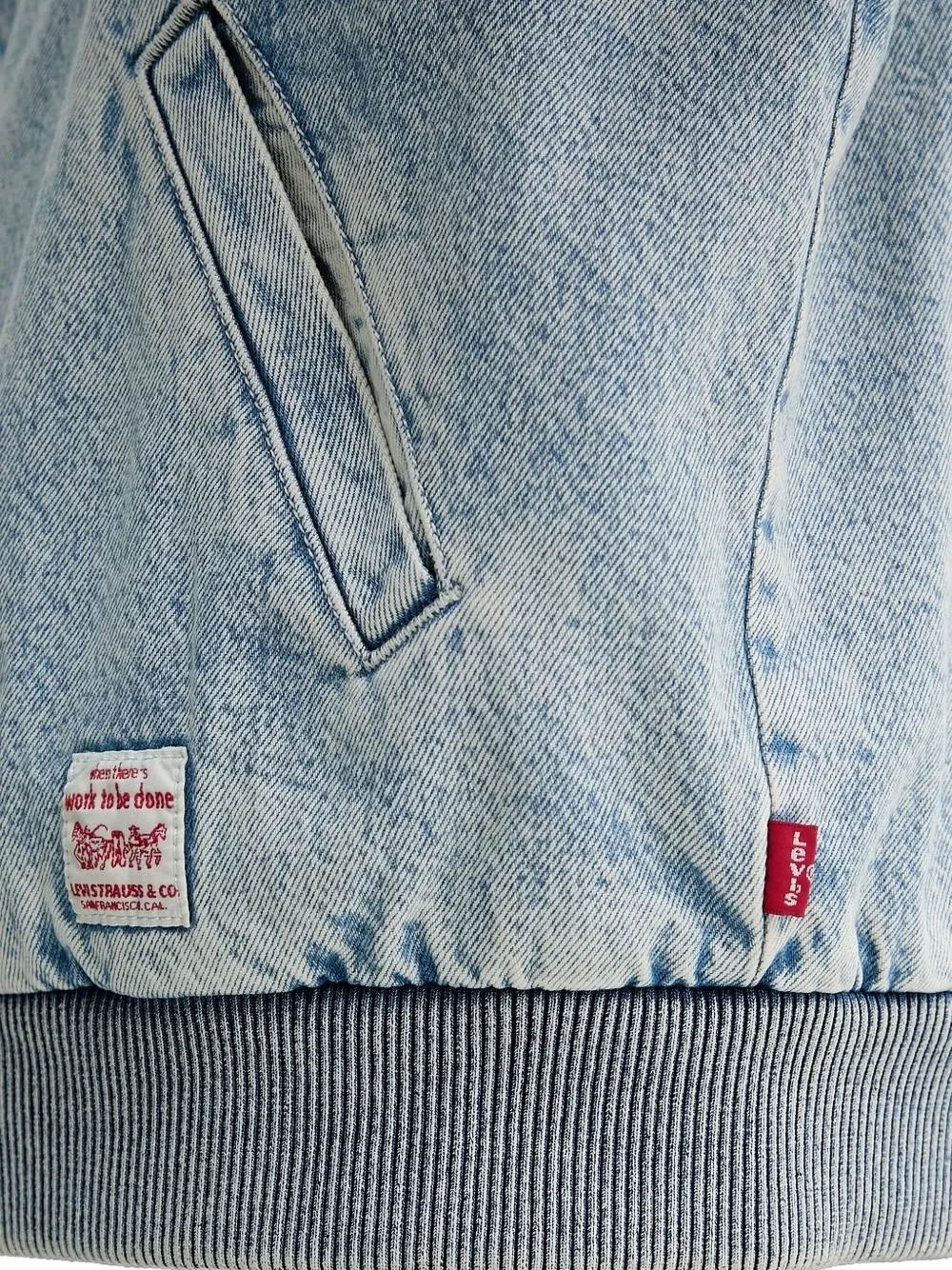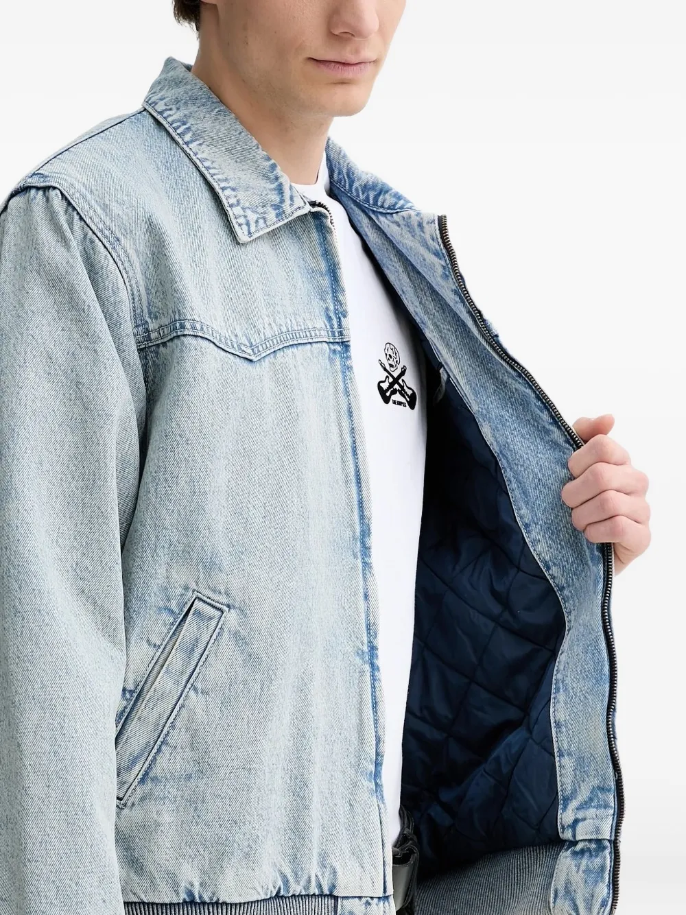 Светло-голубой хлопковый жакет с застежкой-молнией спереди, ребристыми манжетами и прорезными карманами по низу, с эффектом кислотной стирки
