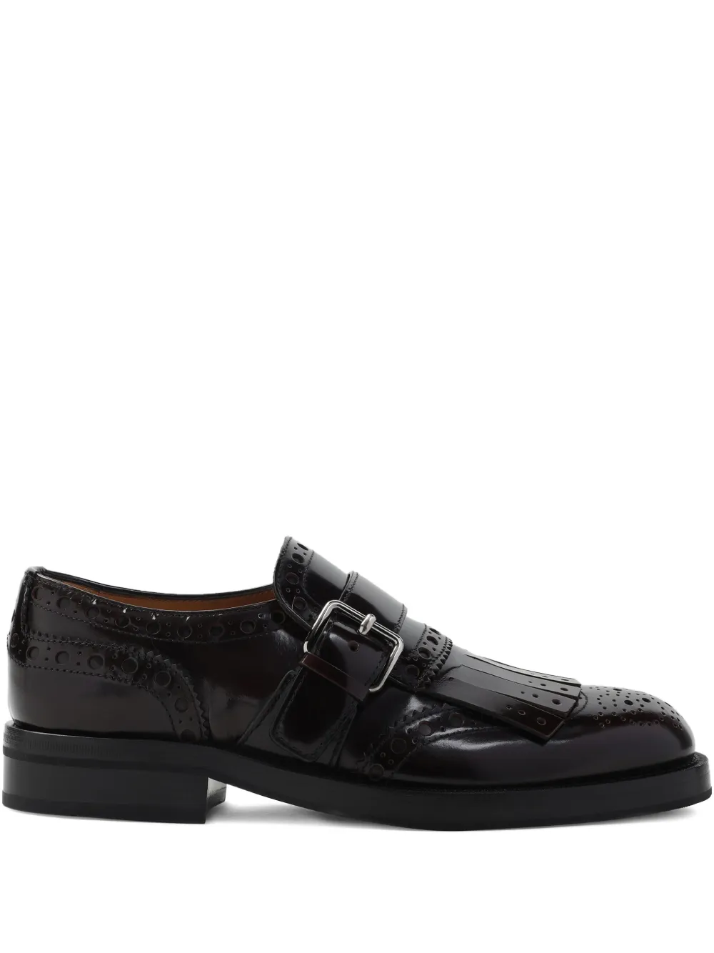 Бордовые кожаные броги с застежкой на одну пряжку и кисточками.