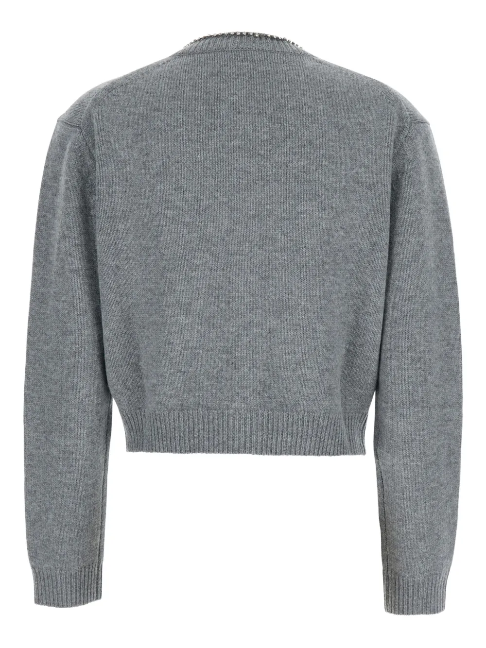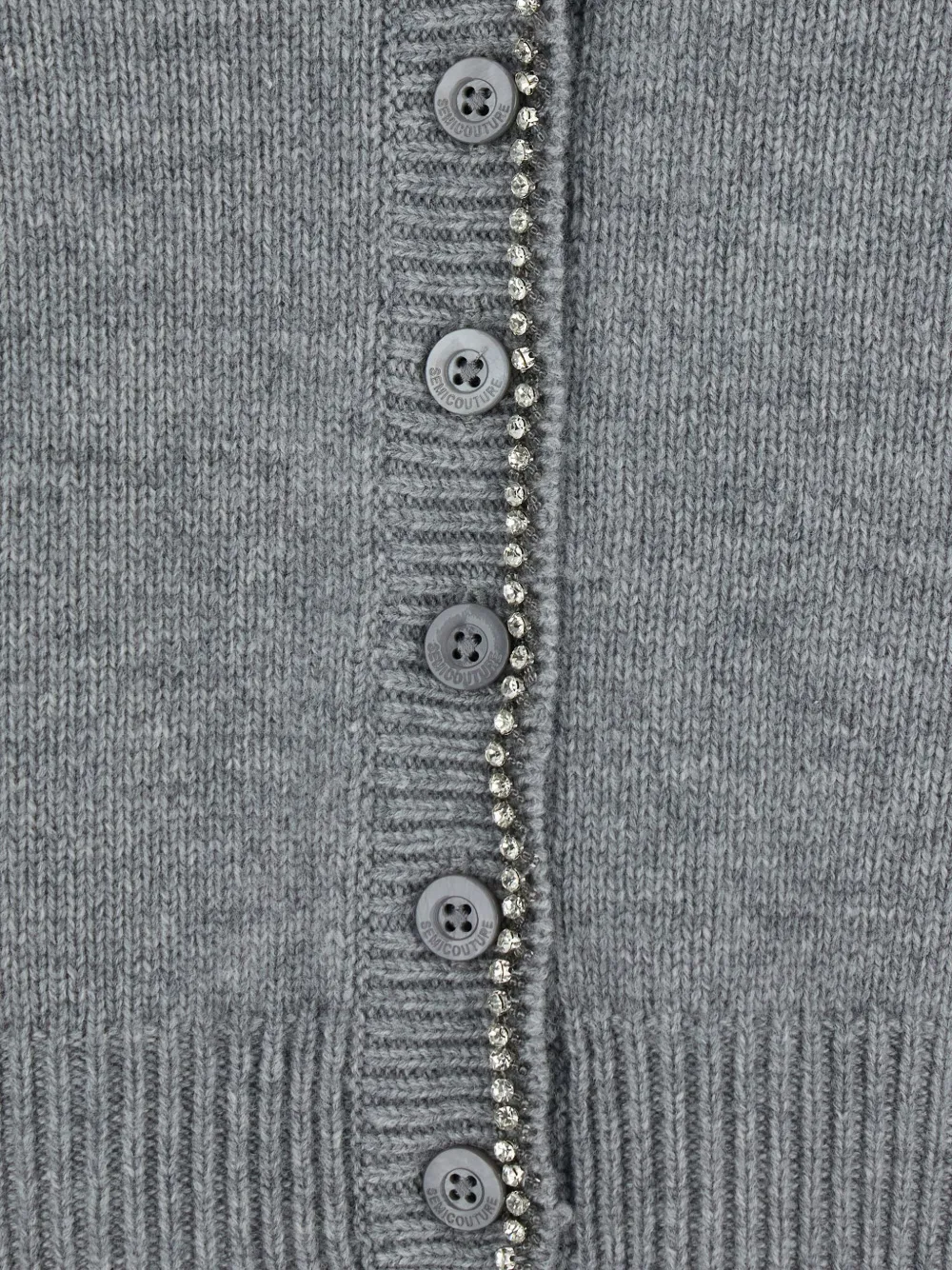 Серая декорированная застежка на пуговицы, V-образный вырез, длинные рукава, ребристый подол.