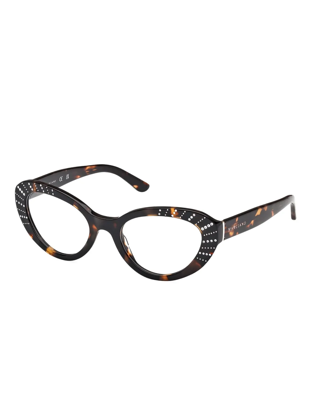 Коричневые прозрачные линзы в форме кошачьего глаза с черепаховым узором. Эти очки поставляются с защитным футляром. Все очки FARFETCH продаются в оправах без диоптрий.