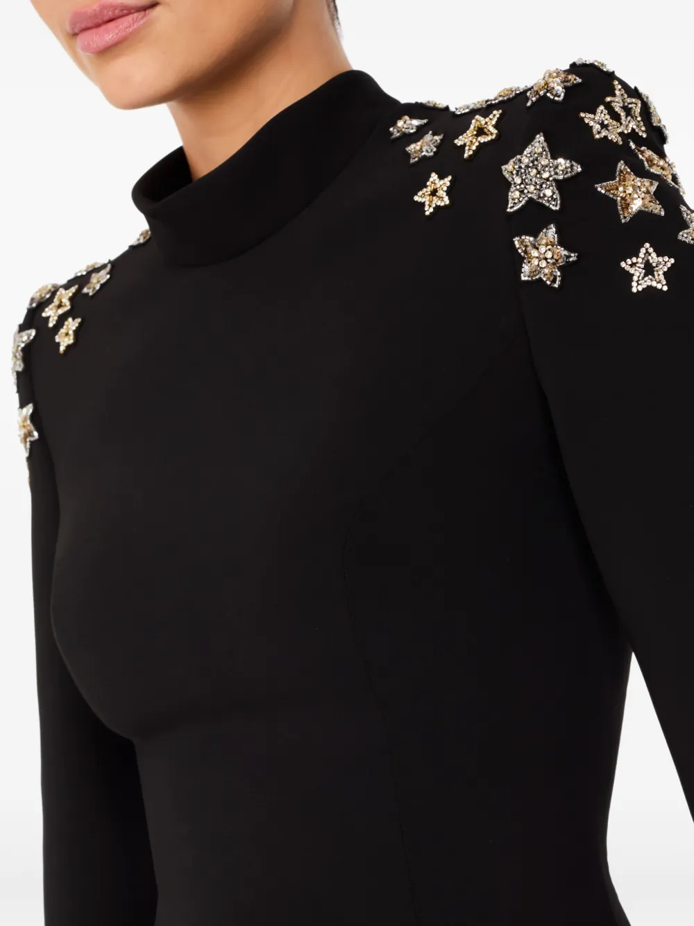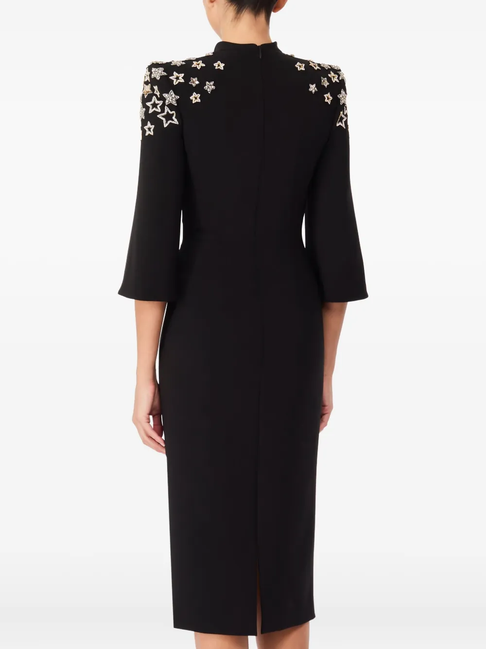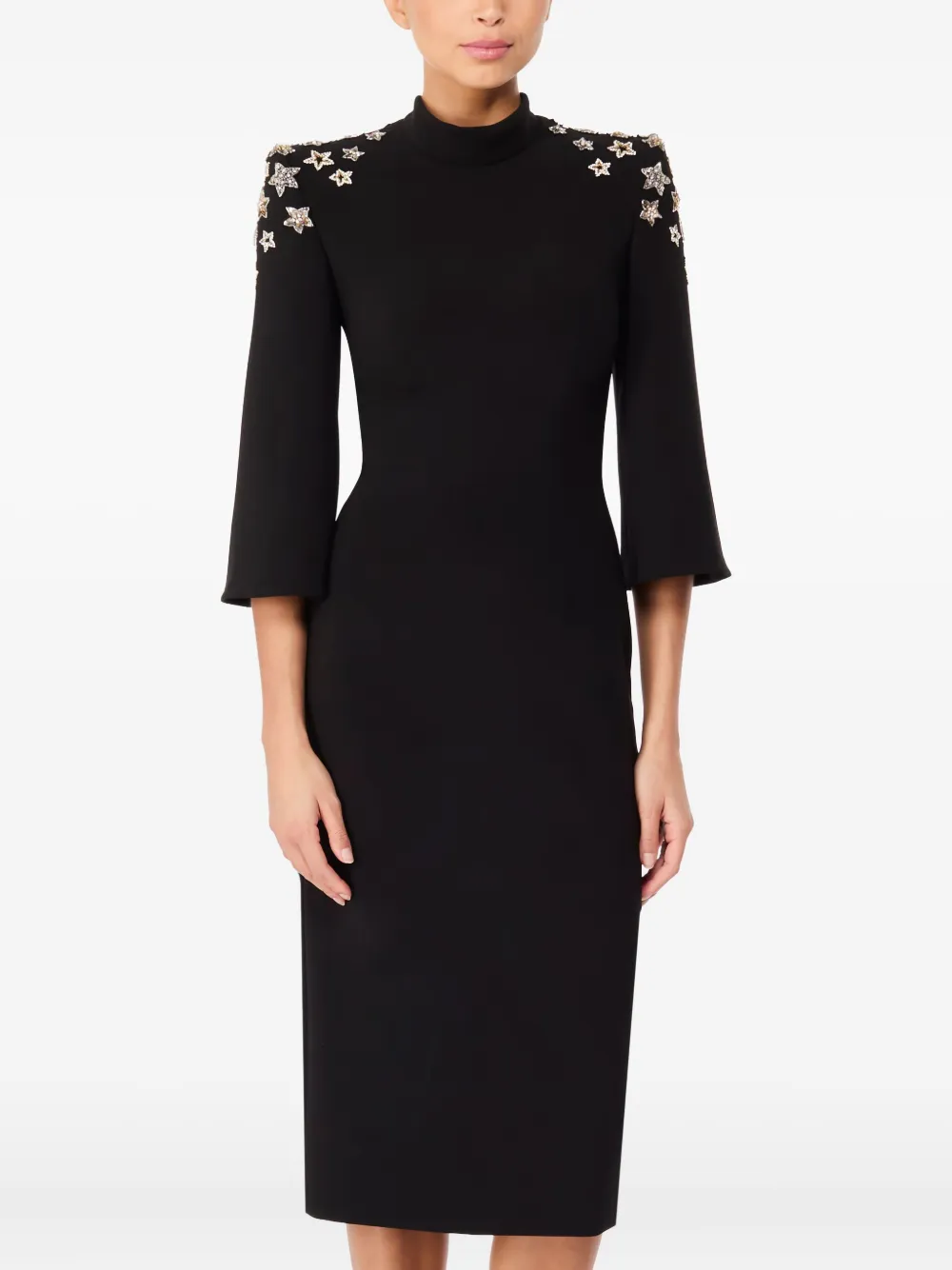 Декорированное платье миди с высоким воротником Jenny Packham, черный