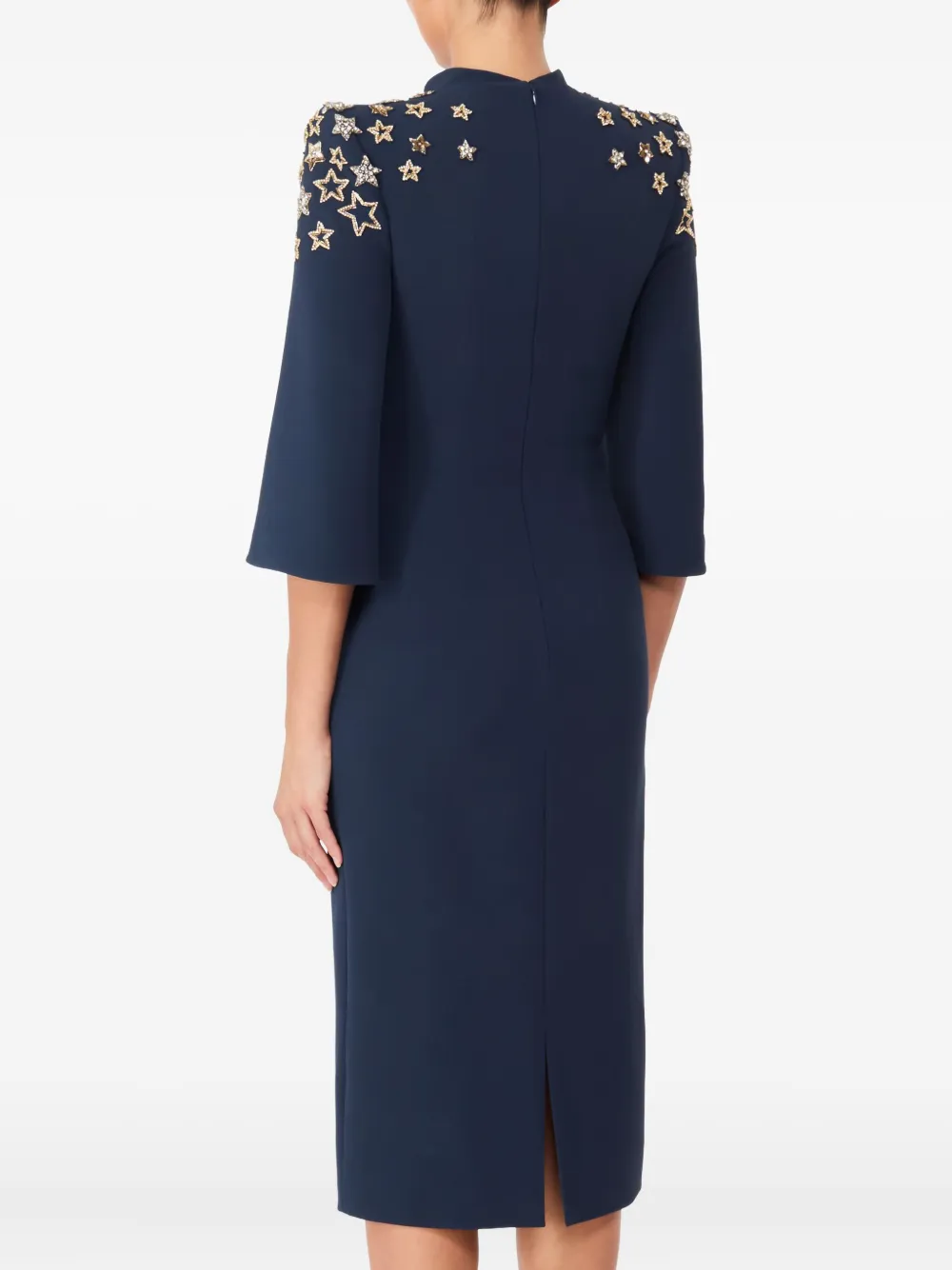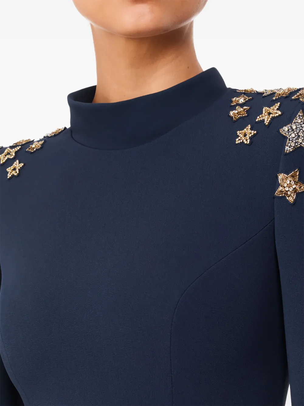 Декорированное платье миди с высоким воротником Jenny Packham, синий