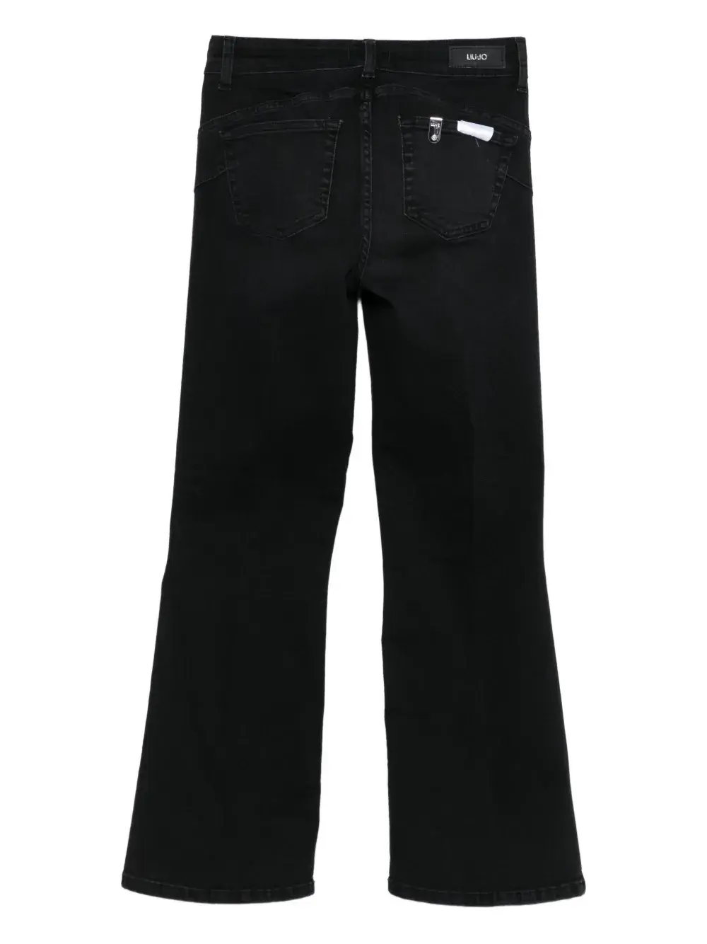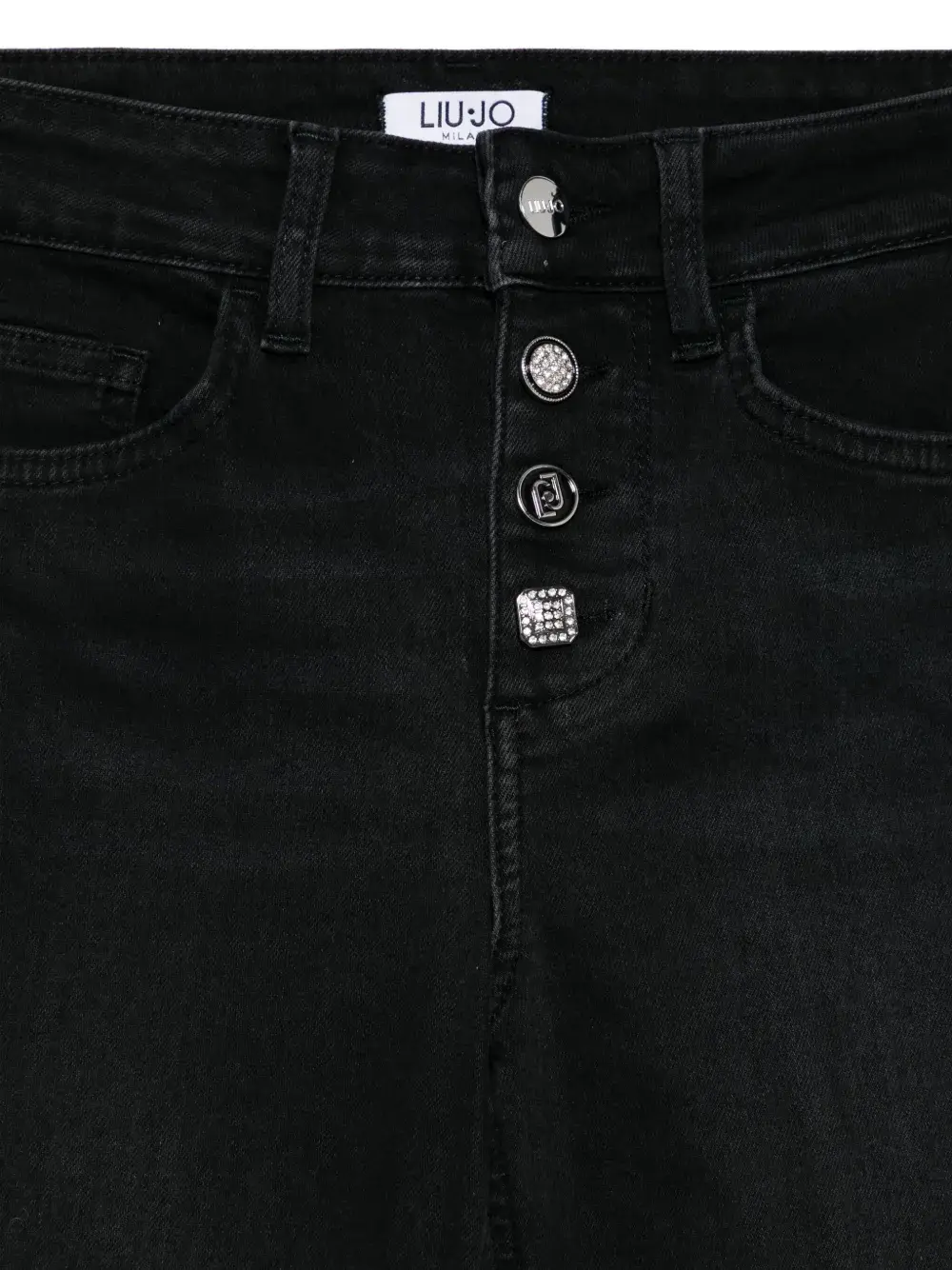 Черный расклешенный крой, застежка на пуговицы, декорированная застежка на пуговицы, высокая талия, пять карманов