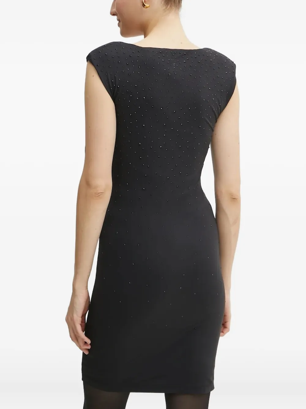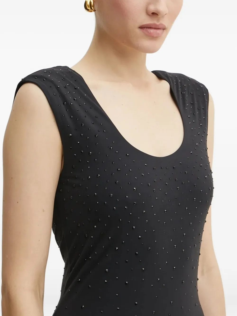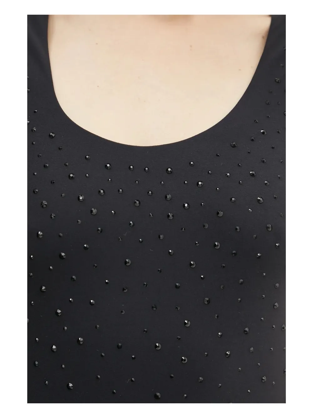 Черная безрукавка с круглым вырезом и отделкой из драгоценных камней